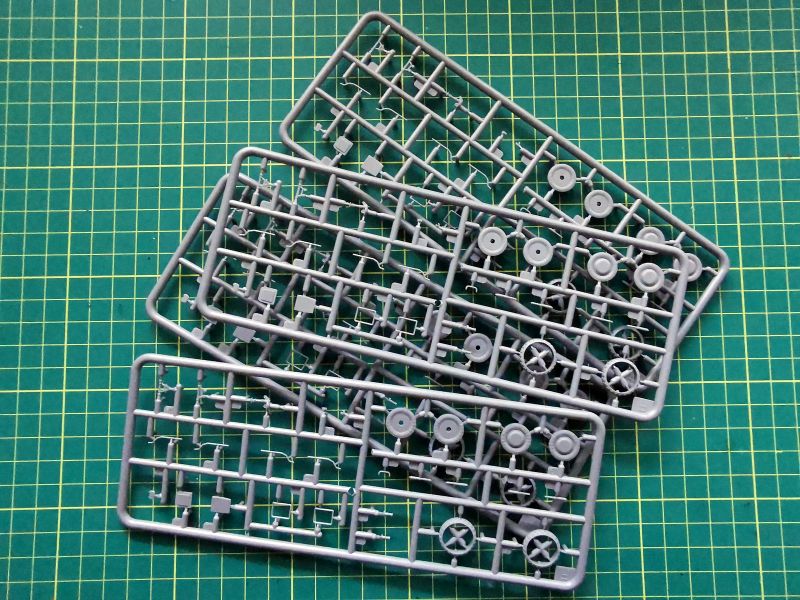 W skład zestawu wchodzą także dwie mniejsze ramki. Właściwie trzy bo jedna jest podwójna. Pojedyncza, większa to ramka „C” na której znalazły się błotniki oraz drobne elementy wyposażenia wnętrza ale i osprzętu montowanego na kadłubie.