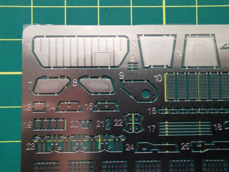 Tu z kolei stosunek powierzchni fototrawionej blaszki w stosunku do arkusika kalkomanii wychodzi z korzyści a na rzecz tej ostatniej. Blaszka nie jest już tak imponująca, bo nie ma osłon, pozostałe detale oczywiście są i jest to dokładnie to samo, co w poprzednim zestawie.