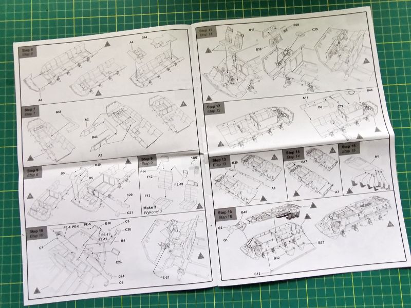 Schematy malowania znalazły się oczywiście na ostatnich stronach instrukcji. Producent pominął tu zamieszczenie jakichkolwiek informacji na temat samego pojazdu, znajdziemy natomiast wszystko, co nam będzie potrzebne do prawidłowego zbudowania jego miniatury. Tabela kolorów, schemat kolorystki wnętrza i czytelne rysunki montażowe, które krok po kroku przeprowadzą nas przez poszczególne etapy budowy.