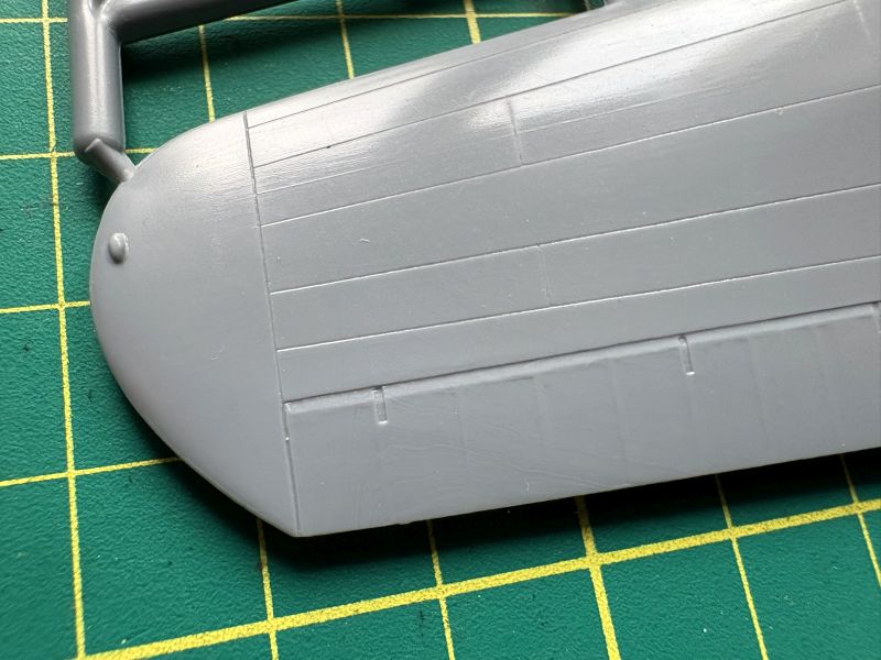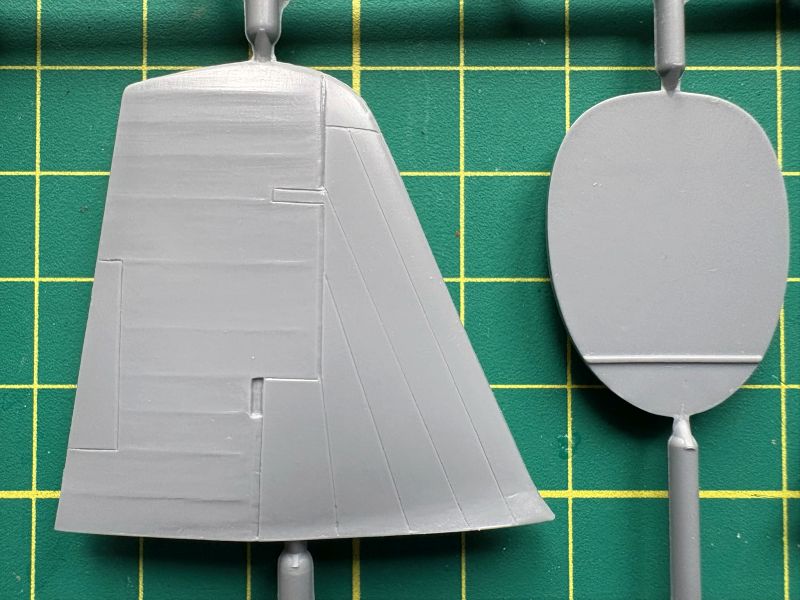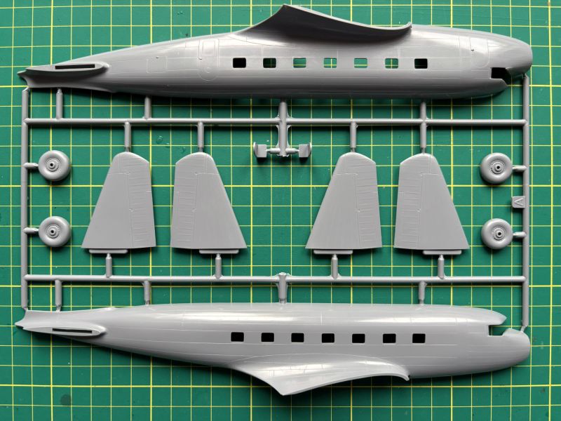 Ponieważ pierwsze wydanie zestawu miało miejsce ćwierć wieku temu, nietrudno się domyśleć, że będziemy mieli do czynienia z short runem. Musimy się przygotować na konieczność starannego oczyszczenia z krawędzi po łączeniu form wszystkich miejscach stykua z sobą poszczególnych elementów. Musimy także mieć świadomość, że nie wszystko tu będzie się składać jak klocki. Wypraski jednak wyglądają nieźle, o czym można się przekonać oglądając zdjęcia tej, oznaczonej jako „A”. Zajdziemy na niej połówki kadłuba, usterzenie poziome, koła podwozia głównego oraz fotele pilotów. Czyszczenia i szlifowania o którym wspominałem będzie względnie niedużo.