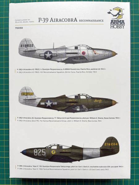 Drugim modelem, który uzupełnił ofertę warszawskiego producenta jest rozpoznawczy wariant Airacobry. Temat znany podwójnie, bo zestaw jest na rynku od kilku ładnych lat, a ponadto Arma Hobby zdążyła już wydać model rozpoznawczej Cobry, ale w skali 1/48.