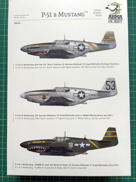Samolot por. Michaela Moffitta zastąpiono maszyną por. Williama A. Shomo, co pozwala przypuszczać, że w pudełku z rozpoznawczymi wariatami Mustangów D/K znajdzie się także słynny „Flying Undertaker”.