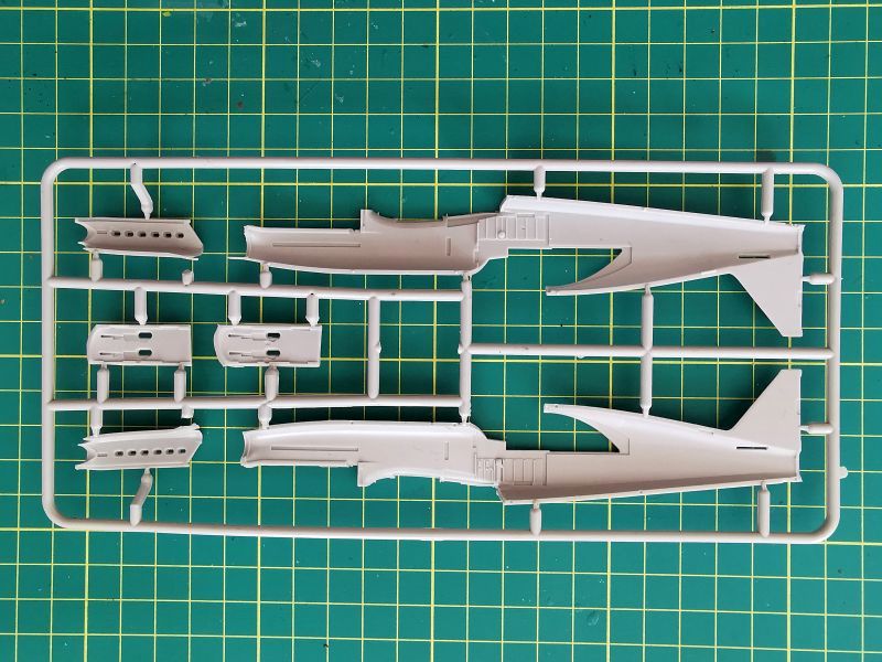 Wypraska „D” to w większości podzespoły makiety silnika, a właściwie dolnej jego części, dalsza część podzespołów kokpitu a także klapy, w wersji zamkniętej. Są także górne części luków podwozia w części kadłubowej, przykleimy je do górnych powierzchni skrzydeł. Co ciekawe producent wykonał na nich także imitację przewodów instalacji elektrycznej.