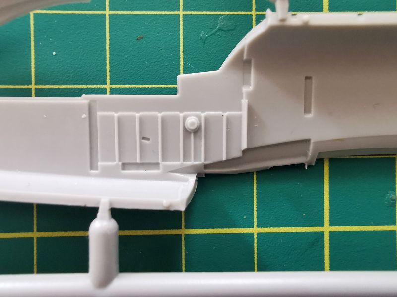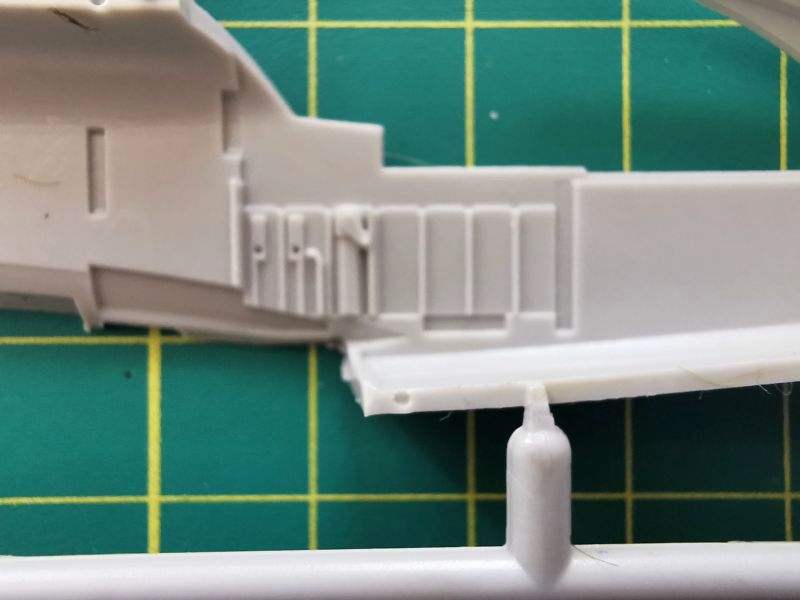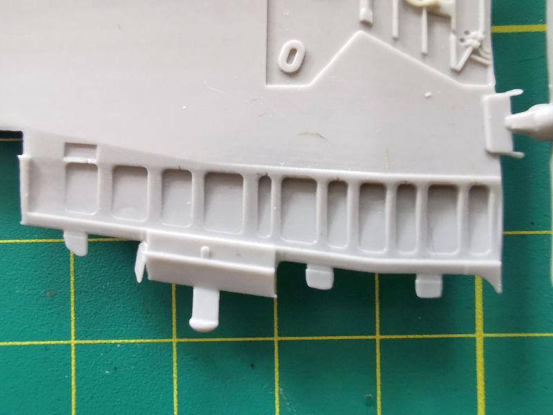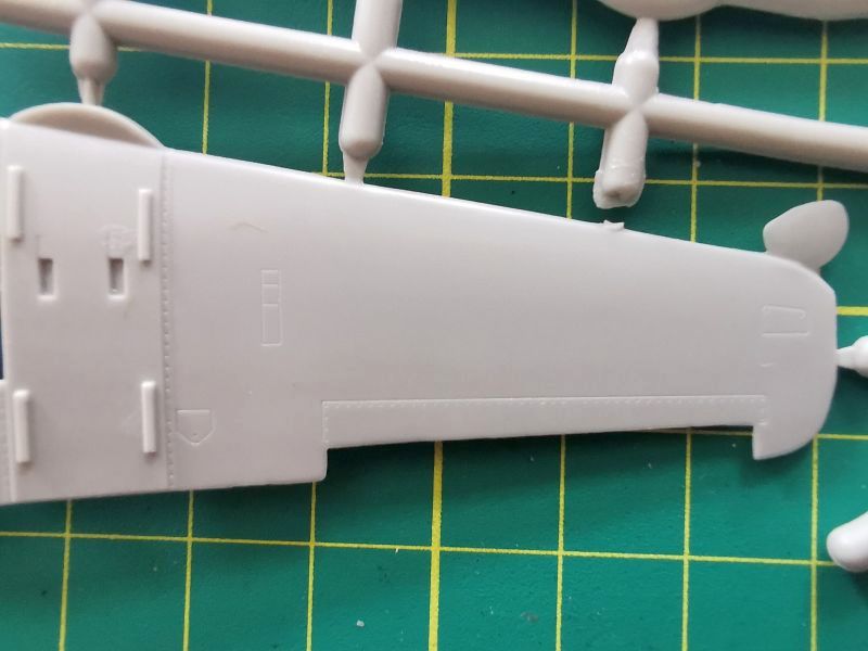 Najpierw przyjrzyjmy się wyprasce „B” czyli skrzydłom. Skrzydła, a właściwie płat ma też klasyczny podział na część dolną wraz z centropłatem oraz lewą i prawą górna część. Producent od razu zapulsował u mnie wykonując wszystkie powierzchnie sterowe jako oddzielne elementy, daje to po prostu więcej życia budowanej miniaturze. Linie podziału, panele inspekcyjne i imitacje nitów są wykonane w identyczny sposób jak na połówkach kadłuba a ich niewielka ilość wynika z konstrukcji samolotu niż zaniedbań producenta. Po prostu ich tyle było. Sporo natomiast się dzieje we wnękach klap i lukach podwozia, wystarczy spojrzeć na zamieszczone zdjęcia. Detalu całkiem sporo i jak na zastosowaną technologię całkiem nieźle wykonany.