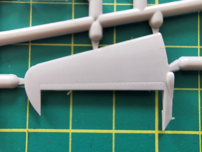 Kolejna wypraska, czyli „C” zawiera usterzenie, klapy, powierzchnie sterowe oraz część podzespołów kokpitu. Do gustu przypadła mi szczególnie wewnętrzna faktura klap oraz podłoga kabiny pilota. Po pomalowaniu wystarczy delikatny wach, aby te miejsca prezentowały się naprawdę efektownie. Producent także ładnie wychwycił występujące w kilku miejscach panele układane na zakładkę. Powierzchnie kryte płótnem w postaci lotek i sterów wysokości mają imitację wykonana w sposób bardzo delikatny, wręcz ledwie dostrzegalny. Czy jest wada czy zaleta, każdy musi ocenić wedle własnego uznania.