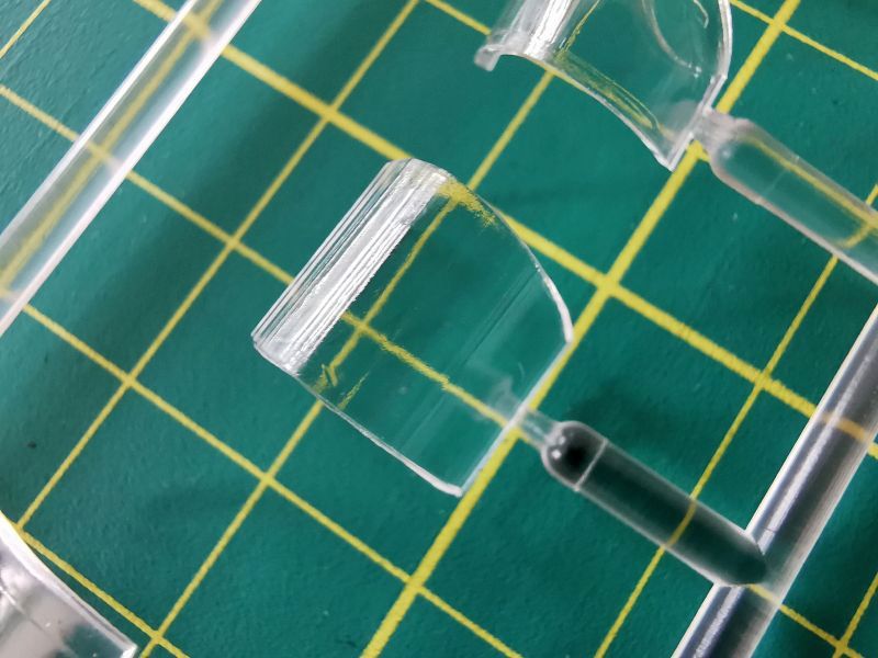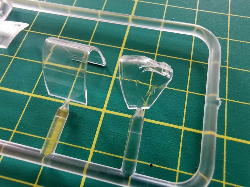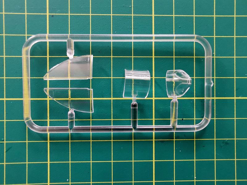 Ramkę „G” wykonano z przezroczystego polistyrenu, jak się można domyśleć, znajdują się na niej elementy oszklenia, w sumie czety podzespoły. Kabinę możemy bowiem wykonać w wersji otwartej, przy czym instrukcja tego nie przewiduje, więc może będzie się nieco pogimnastykować. Samo oszklenie jest wykonane bez zarzuty, ramy poprowadzone równo, czysto i jednocześnie delikatnie. Ponieważ prawdziwy samolot nie posiadał oświetlenia pozycyjnego, był dość prostą konstrukcja, trudno wymagać, aby było ono w modelu.