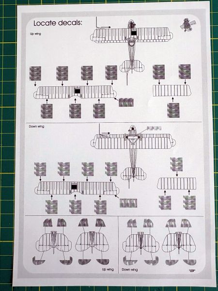 Sposób układania lozegny pokazano na specjalnej ulotce, co jest bardzo dużym ułatwieniem dla każdego, kto ten model będzie kleić. Ja początkowo miałem wątpliwości, czy rzeczywiście płótno było mocowane do skrzydeł w formie poprzecznych pasów obejmujących przestrzeń pomiędzy trzema żebrami, ale trafiłem w sieci na instrukcję modelu tego samolotu w 1/32 z Wintgunt Wings. Tam było tak samo, poza tym dokładnie wskazano położenie każdego pasa płótna na płatach, więc uznałem, że ten typ tak miał. Konsultacja z Przemkiem rozwiała wszystkie wątpliwości.