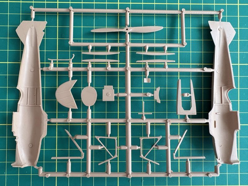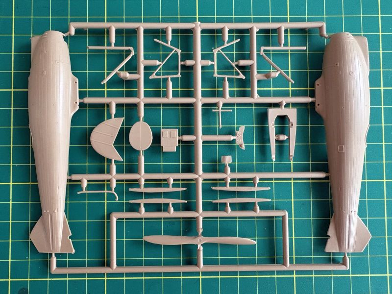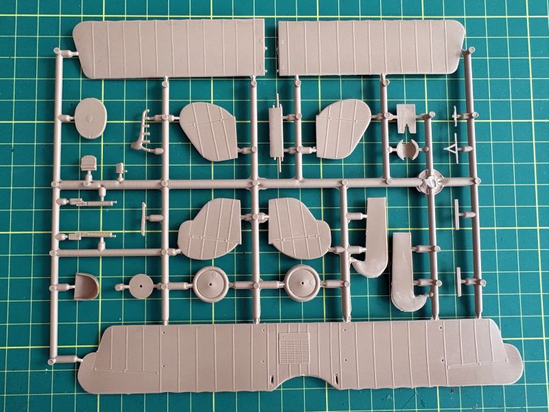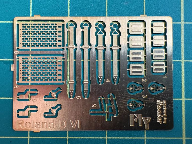 Podstawę zestawu stanowią dwie wypraski wykonane z jasno beżowego polistyrenu. Na pierwszej z nich znajdziemy obie połówki klasycznie podzielonego kadłuba, wyposażenie jego wnętrza, zastrzały centralne, jak i zewnętrzne, golenie podwozia, ster kierunku oraz śmigło. Wszystkie elementy rzecz jasna wymagają starannego oczyszczenia, zwłaszcza na krawędziach, co także nie gwarantuje bezproblemowego montażu modelu. Jakość wykonania poszczególnych elementów jest jednak bez zarzutu, detal wyraźny i starannie wykonany. Najważniejsza rzecz to prawidłowe odwzorowanie najbardziej charakterystycznej cechy Rolanda D VI czyli klepkowego pokrycia kadłuba. W przypadku tego modelu jest jak należy – delikatne wgłębne linie podziału poszczególnych klepek oraz wyraźnie i delikatnie wypukle zaznaczone wszystkie elementy metalowe takie jak okucia czy pokrywy.