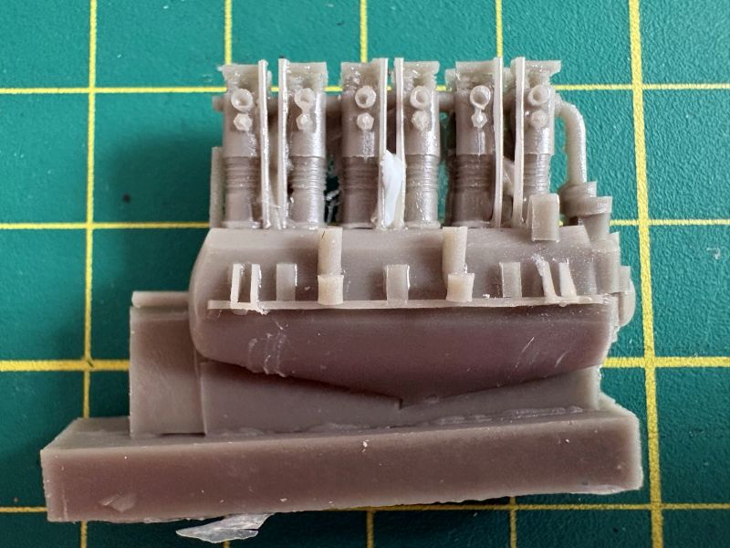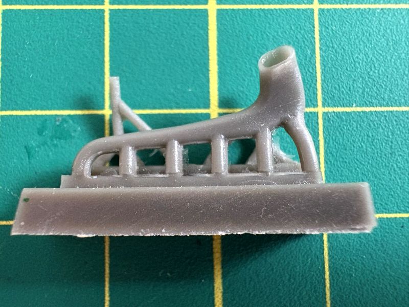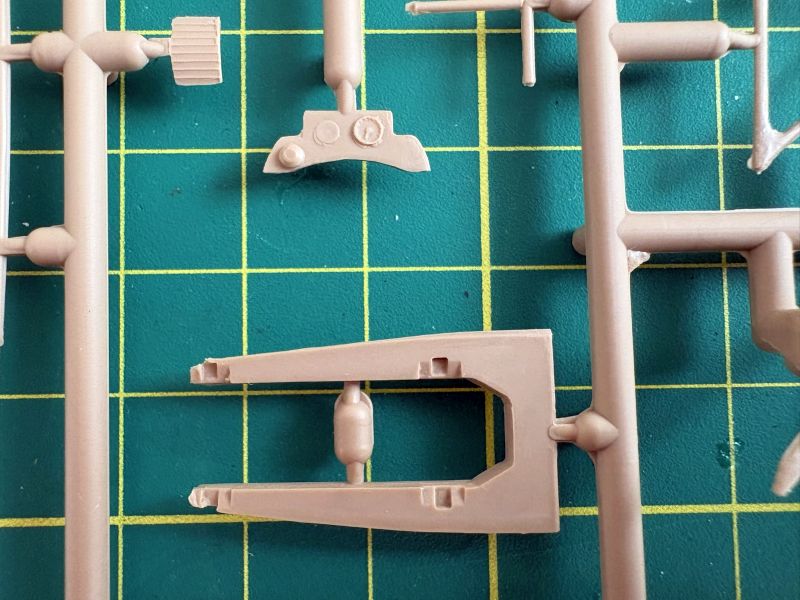 Powyżej określiłem ten zestaw jako klasyczny short – run. Dotyczy to także faktu, uzupełnienia elementów polistyrenowych detalami z żywicy. Dla firmy Fly detale te wykonuje podwykonawca, firma Artillery. W przypadku tego modelu, w formie odlewów żywicznych wykonano makietę silnika wraz z kolektorem spalin i układem wydechowym oraz trochę drobnych detali. Co ciekawe, instrukcja nie przewiduje zastosowania pięknego wydechu z żywicy a wykorzystanie znacznie słabszego elementu z tworzywa. Są one praktycznie identyczne. O co tu chodzi na razie nie wiem, będę o tym myślał, kiedy model znajdzie się już na warsztacie.