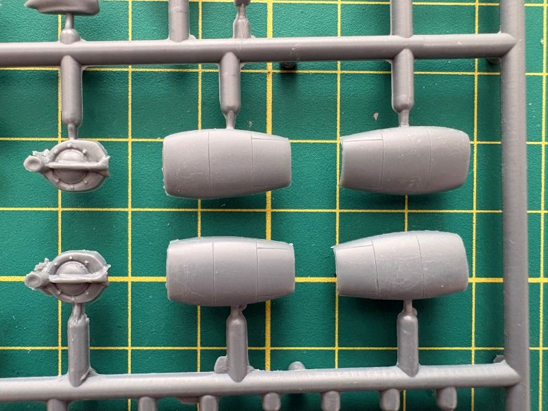 Kolejna wypraska to dolana część centralnego kadłuba z centropłatem oraz trochę elementów struktury płatowca. Są to słony silników, statecznik poziomu, luki podwozia głównego wraz z pokrywami kołpaki śmigieł oraz nos, którego zresztą nie będziemy potrzebować. W tym miejscu warto zwrócić uwagę, że większości elementów, z uwagi na zastosowaną technologii przyda się modelarskie Spa w postaci masażu pilnikami i papierem ściernym. Te modele takie po prostu są i nie ma na to rady. Nie są przez to w żaden sposób gorsze od innych, po prostu wymagają więcej pracy.