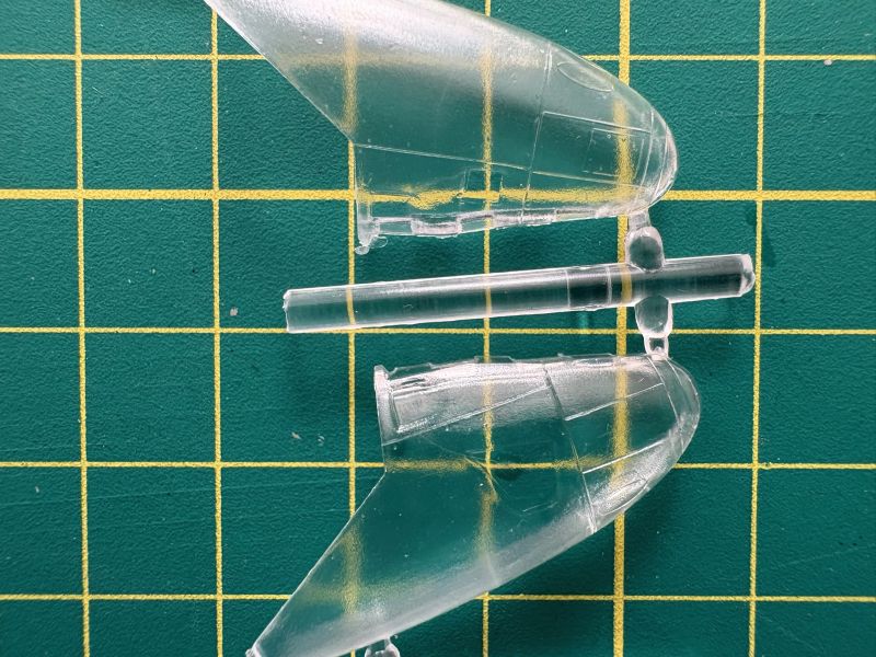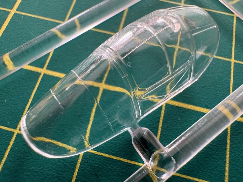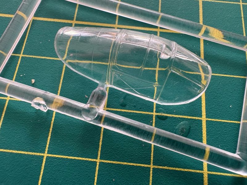 Elementy przezroczyste znajdują się na dwóch niewielkich wypraskach. Pierwsza z nich, to osłona kabiny. Nie jest ona dzielona, ale wykonana na przyzwoitym poziomie. Ma niezłą przejrzystość i ładnie odwzorowane detale. Jeżeli chcemy mieć ją otwartą, to albo musimy pociąć tę z zestawu, albo zastąpić inną na przykład pozostałość po innym modelu.