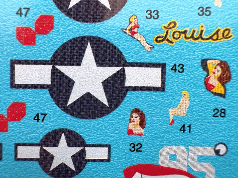 … a jest ich cztery. Barwne schematy tradycyjnie, na odwrocie pudełka. Muszę przyznać, że gdybym nie był zdecydowany na to jedno konkretne, miałbym zgryza. Dobór malowań to bardzo mocny punkt tego zestawu. Co do samolotów na których latał Antoine de Saint-Exupéry, to jest to samolot na którym odbył kilkanaście misji rozpoznawczych, co uwidocznione było na nosie samolotu, wraz imieniem żony pisarza, Jeanne. Do ostatniego lotu w lipcu 1944 r. wyruszył na innym egzemplarzu. Szczątki tej maszyny wydobyto z dna morza i obecnie jako niemal relikwia są eksponowane w paryskim Muzeum Lotnictwa w Le Bourget.