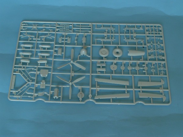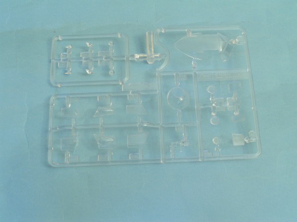 W środku znajdujemy sześć ramek (jedna zdublowana) z jasno szarego tworzywa, również typowego dla lotniczej części produkcji Revella oraz jedna ramka z oszkleniem. W sumie 222 elementy.