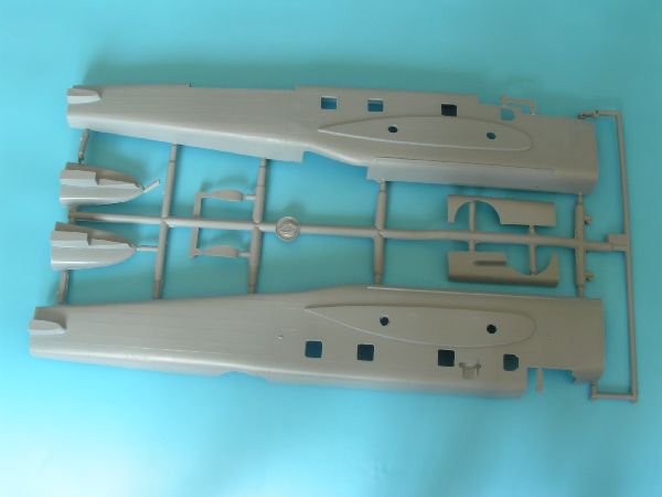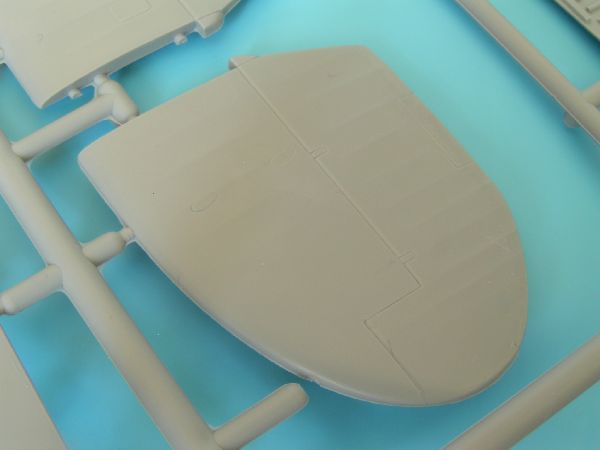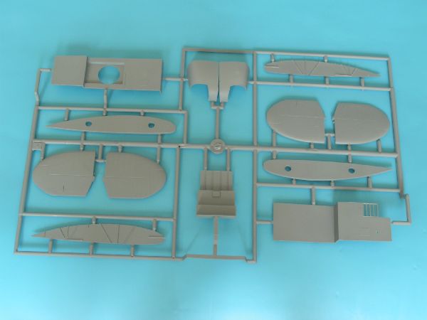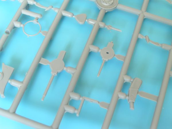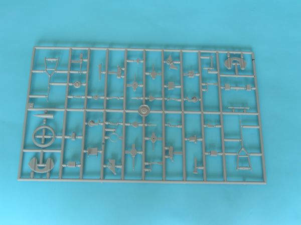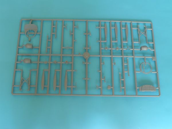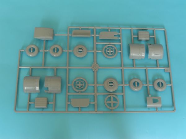 Zasadnicze elementy modelu zostały wykonane z dosyć twardego tworzywa w kolorze ciemnoszarym. Rozmieszczono je na 7 ramkach, w sumie 153 elementy z których 23 nie wykorzystamy, SA to detale zapewne do innych wersji i sądzic należy, ze takowe są w planach producenta. Bardzo wysoka jest jakość wykonania części pomimo, że mamy do czynienia z technologią „schort run”, Linie podziału blach są cienkie, równie i delikatne, a jednocześnie dość głębokie, za co również należy pochwalić producenta.