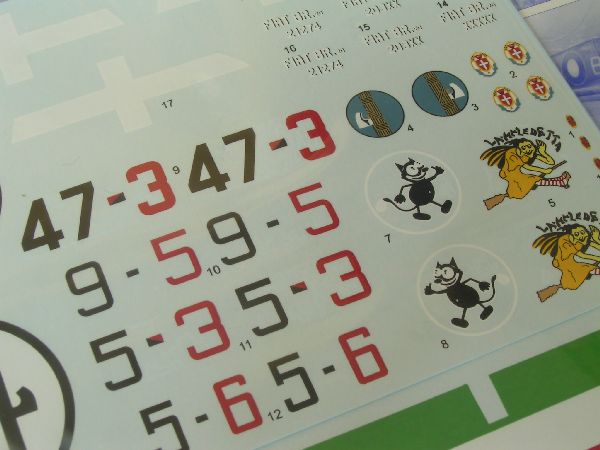 Dołączone do zestawu dwa arkusiki kalkomanii umożliwiają wykonanie modelu w 4 dosyć atrakcyjnych malowaniach, wszystkich z Reggia Aeronautica. Rysunek kalek jest czysty i bez przesunięć poza oznaczeniami znajdziemy również napisy eksploatacyjne, zresztą nic dziwnego bo ich autorem jest firma Aviprint.