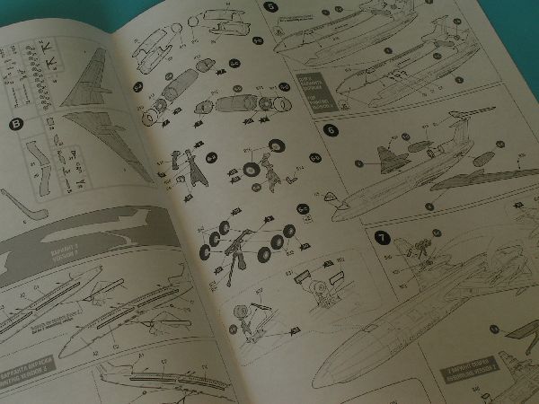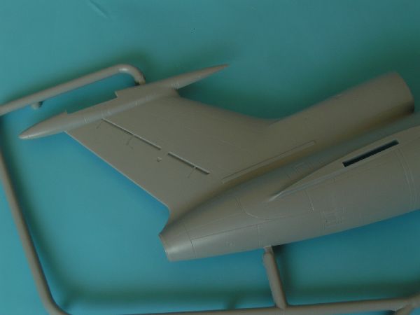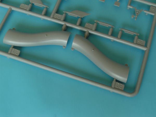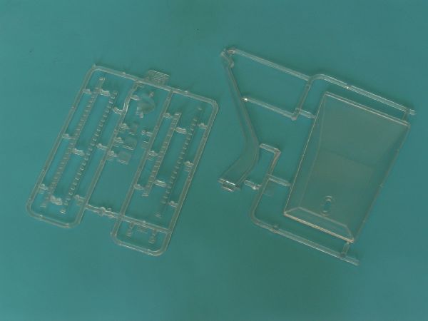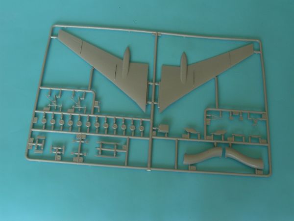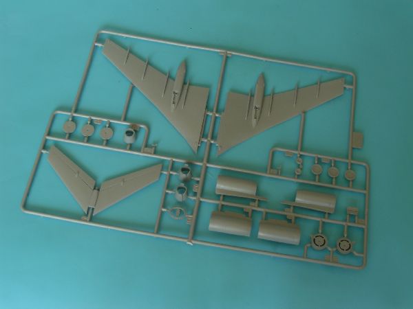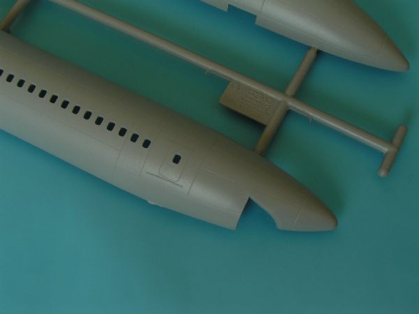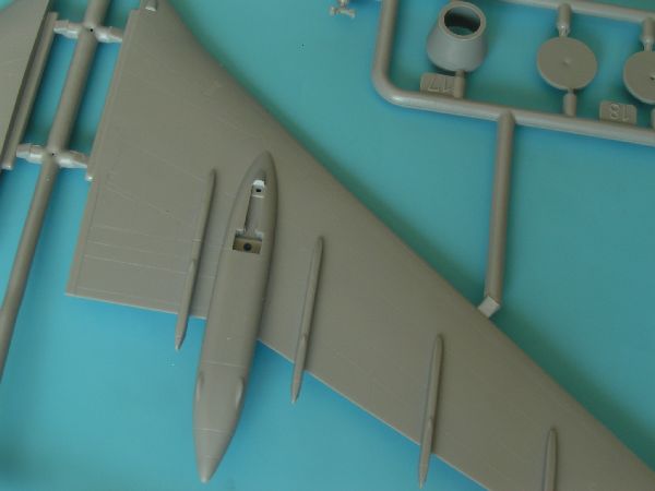 Zestaw składa się z trzech ramek, jedna z połówkami kadłuba i dwie większe górne i dolne części płatów oraz detale. Części wykonano z jasnoszarego polistyrenu średniej twardości. Dodatkowo otrzymujemy dwie ramki z przeźroczystego tworzywa – na jednej elementy oszklenia na drugiej podstawka.