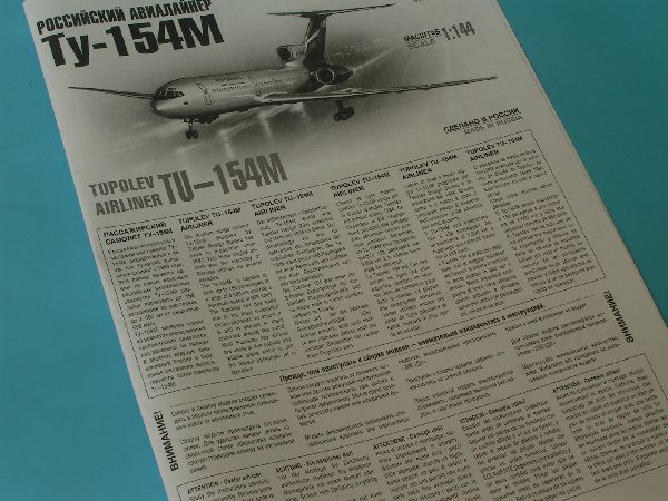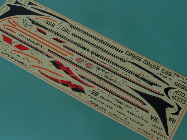 Dołączony do zestawu arkusik kalkomanii umożliwia wykonanie jednego z trzech malowań, dwóch z Aerofłotu – w wersji ZSRR i Rosyjskiej oraz „Free sky” Ośrodka Treningu Kosmonautów im. J. Gagarina. Rysunek kalkomanii jest czysty, wyraźny i bez przesunięć, zaś błona cienka. Dopiero podczas klejenia przekonamy się co są naprawdę warte.