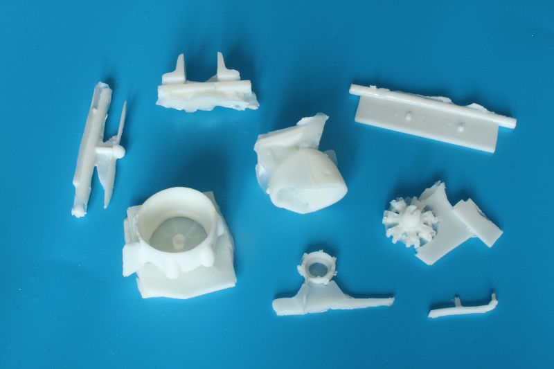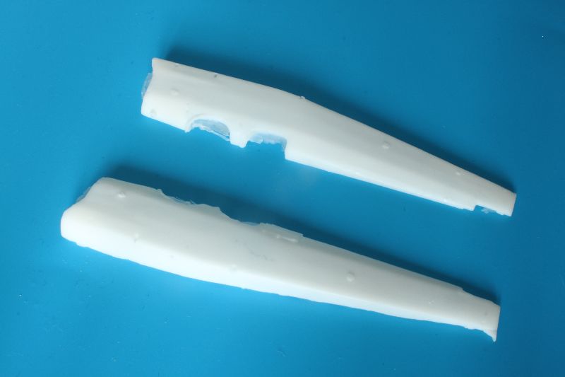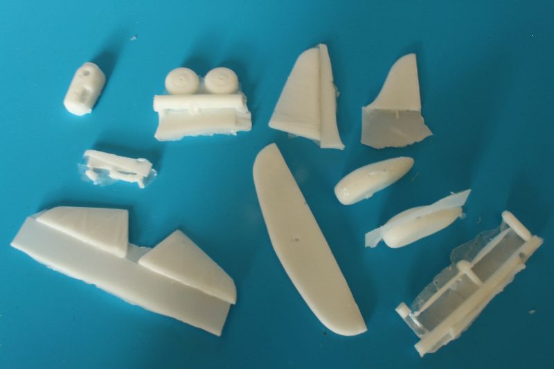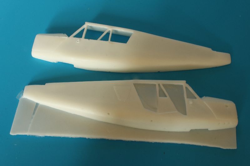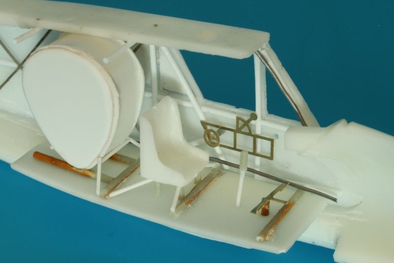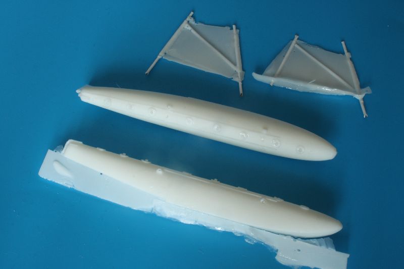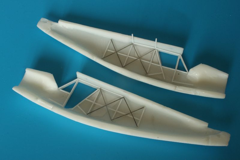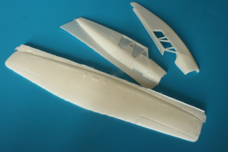Zasadnicze elementy obu zastawów mogą na pierwszy rzut oka nie zachwycać, zdarzają się dziury po bąblach powietrza czy niedolewki, ale powiedzmy sobie szczerze, że na naszym rynku jedynie takie tuzy w produkcji modeli żywicznych jak TopGun czy Choroszy Modelbud dają sobie z tym problemem radę. Niektóre elementy takie jak płaty zdają się być trochę zwichrowane, na co producent powinien zwrócić uwagę podczas sezonowania ich po wyjęciu formy. Po bliższym przyjrzeniu się obu zestawom z dużą przyjemnością zdałem sobie sprawę z bardzo przemyślanego podziału technologicznego obu modeli i dobrego spasowania części. Usterzenia wykonano jako dzielone co doda atrakcyjności budowanym replikom, zaś lotki w płatach są łatwe do odcięcia jeśli ktoś chciałby je wykonać w pozycji wychylonej. Wszystkie zastrzały producent sugeruje wykonywać samodzielnie, ale do części z nich dołącza wzmocnione drutem odpowiednie detale z żywicy. Pomysł dobry, ale drut jest zdecydowanie za gruby co odbija się na jakości elementów. Gdyby był cieńszy byłoby genialnie, na przykład w RWD-5 końcówka zastrzału stanowi oś, na którą wklejamy koło wraz z osłoną – bardzo dobry pomysł. Takich w obu modelach jest sporo, dla przykładu pełne pływaki w RWD-17W z bardzo ładnie odtworzoną fakturą powierzchni, oczyścić tylko dolną część i mamy gotowy ten element bez szlifowania, nacinania, rezania itp. Albo oszklenie w RWD-5. Przód robimy w oparciu o element vacu. Boki natomiast za pomocą szablonów i fototrawionych ramek. W przypadku zamkniętych drzwi tylko wkleić wszystko na swoje miejsca. Jeżeli drzwi robimy w pozycji otwartej, bo mamy taka możliwość, wystarczy pociąć fototrawioną ramkę wzdłuż wytrasowanych linii, podkleić kliszą i wkleić na swoje miejsca. Widać, że przy opracowywaniu zestawów, ktoś zadał sobie trud by przemyśleć cały proces budowy modelu. Tu mała dygresja na temat RWD-17W. Wyczytałem w sieci, że tak naprawdę to można kupić RWD-8 z Mirage Hobby postawić na pływaki, dodać gwiazdowy silnik i będzie ok. Kiedyś też miałem podobnie szalony pomysł, gdyby nie to, że RWD-8 różnił się od 17-tki innym kadłubem, płatem usterzeniem, pływakami… Model z Maufakury uwzględnia te różnicę, ale autorowi tego posta na forum, życzę powodzenia w konwersji.