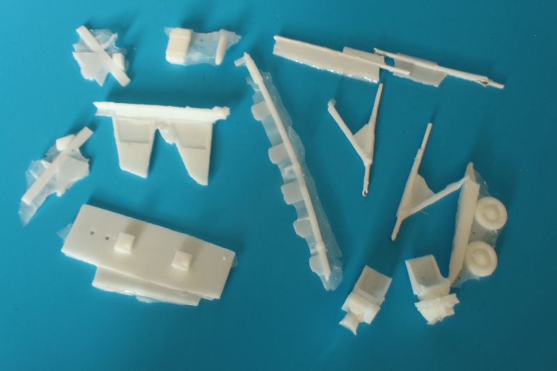 Obydwa zapakowane są w kartonowe pudełka z kolorową etykietką przedstawiającą modele obu „Erwudziaków” co jednoznacznie wskazuje, że te modele można jednak skleić. Każdy zestaw składa się z kilkudziesięciu odlewów z jasnokremowej żywicy, blaszki fototrawionej, kliszę z zegarami i elementami oszklenia (w przypadku RWD-5) oraz kalkomanii. Ponadto w modelu RWD-5 znajdujemy szybę przednia uformowaną metodą vacu. Producent wykonał ponadto niektóre elementy oszklenia z przezroczystej żywicy, co jednak moim zdaniem nie jest zbyt dobrym pomysłem. Są one szalenie kruche i lepiej wykorzystać dołączone klisze, w przypadku RWD-5, lub w przypadku RWD-17W wykonać osłony wiatrochronów samodzielnie. W obu zestawach musimy wykonać od podstaw kilka drobnych elementów.