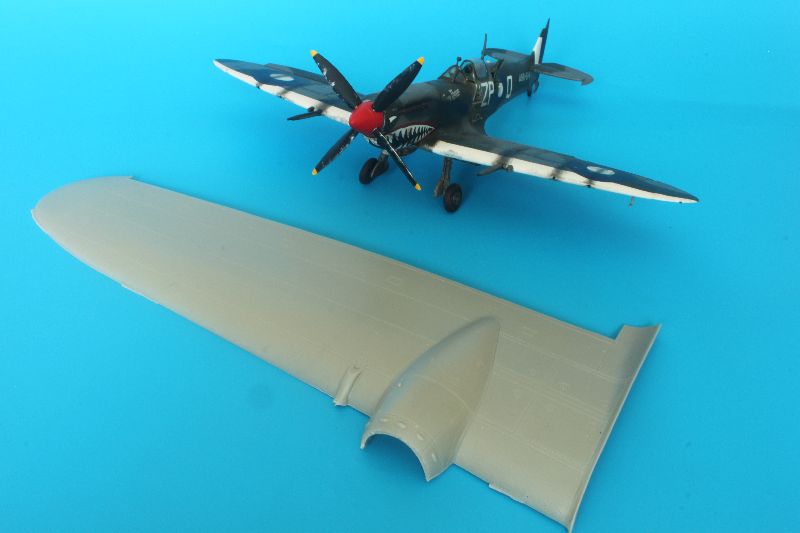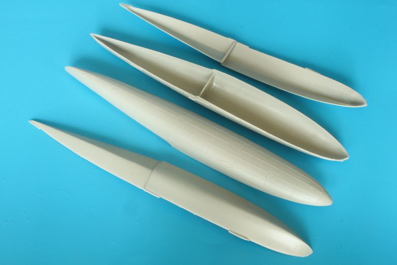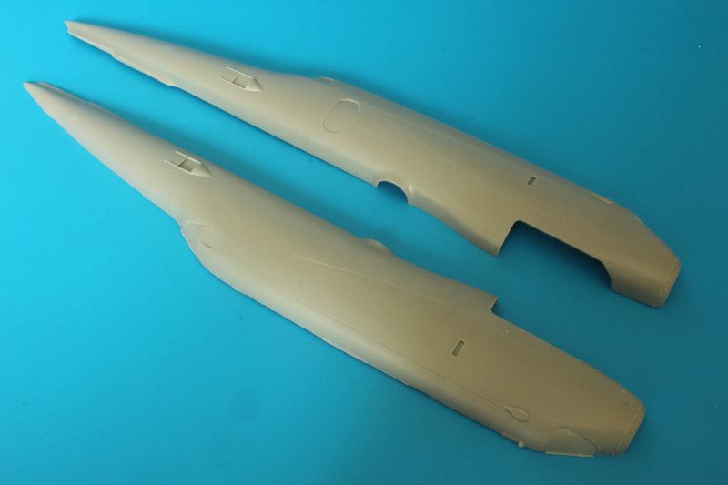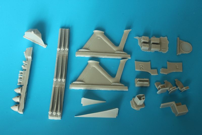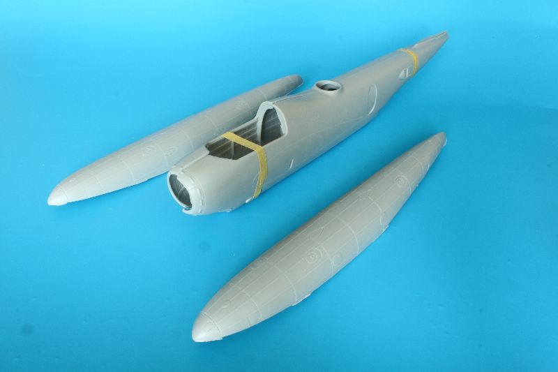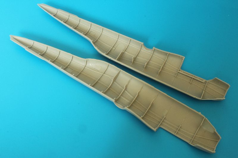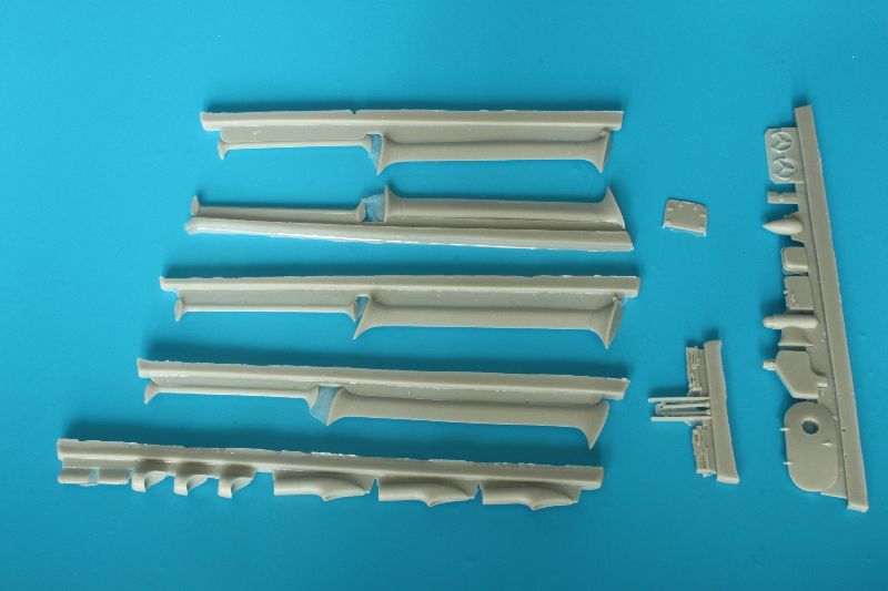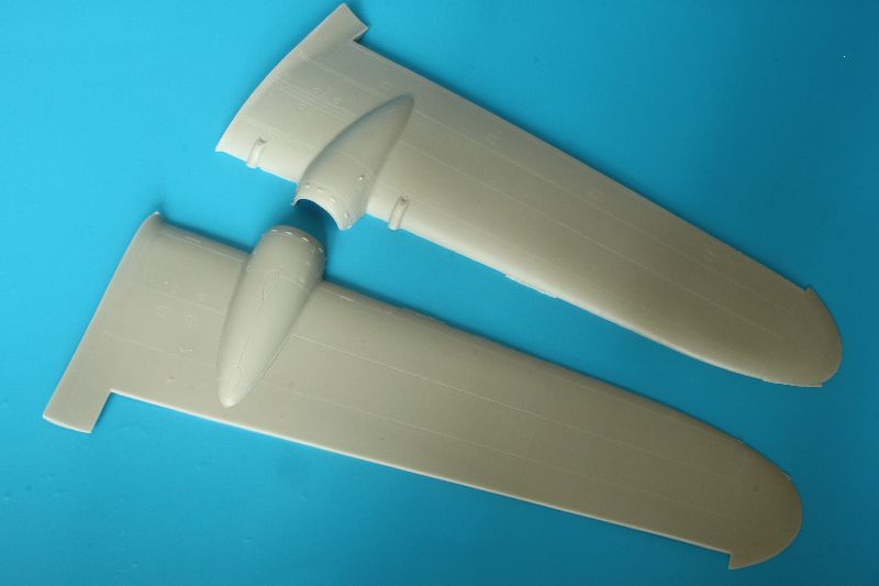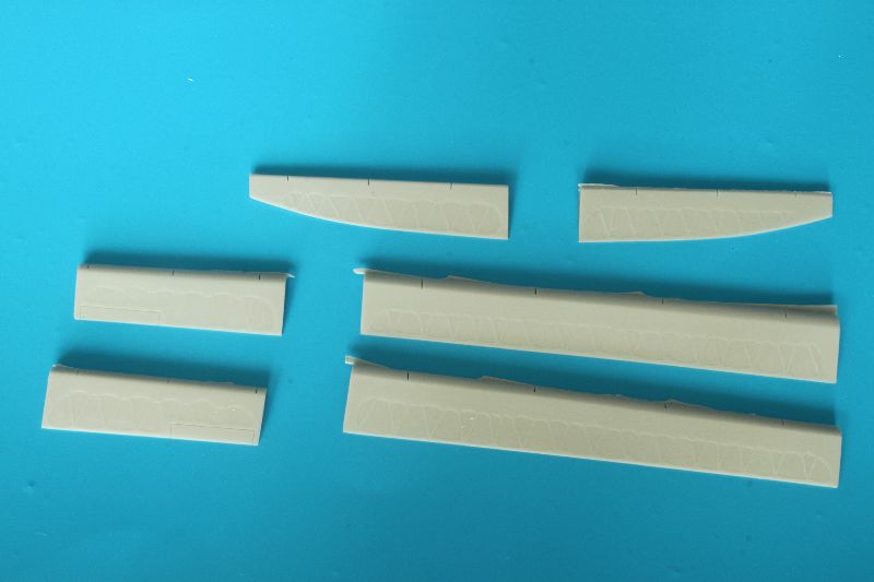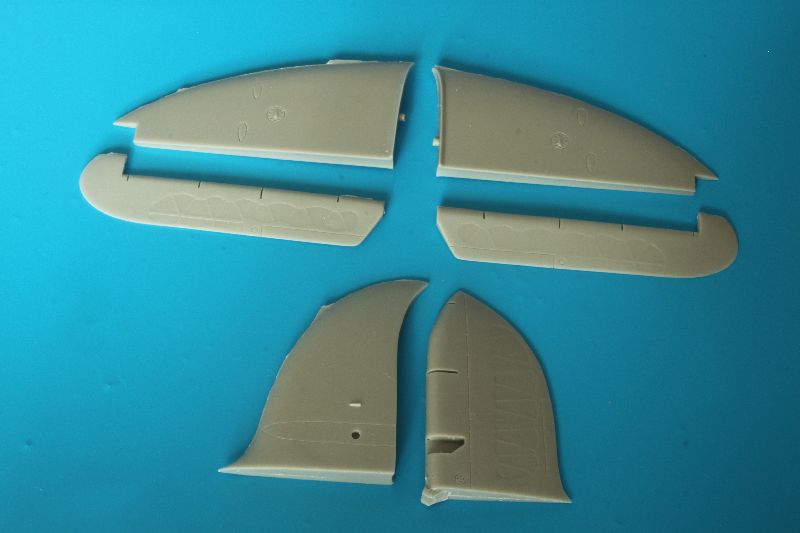 Zasadniczych elementów żywicznych jest w modelu 97. Od razu rzuca się w oczy wielkość modelu, jeden płat ma około 30 cm długości. Z uwagi na drewnianą konstrukcję oryginału w modelu nie ma zbyt wiele linii podziału, a te które są poprowadzono równo i delikatnie. Odwzorowano ponadto wszystkie panele i pokrywy luków inspekcyjnych. Znajdujemy je głównie na płatach i pływakach. Bardzo wiernie odtworzono również fakturę pokrycia płóciennego na ruchomych powierzchniach usterzenia, klapach i lotkach, które wykonano jako dzielone, co jest dużym plusem zestawu.