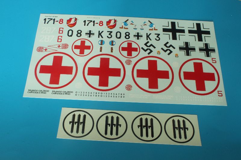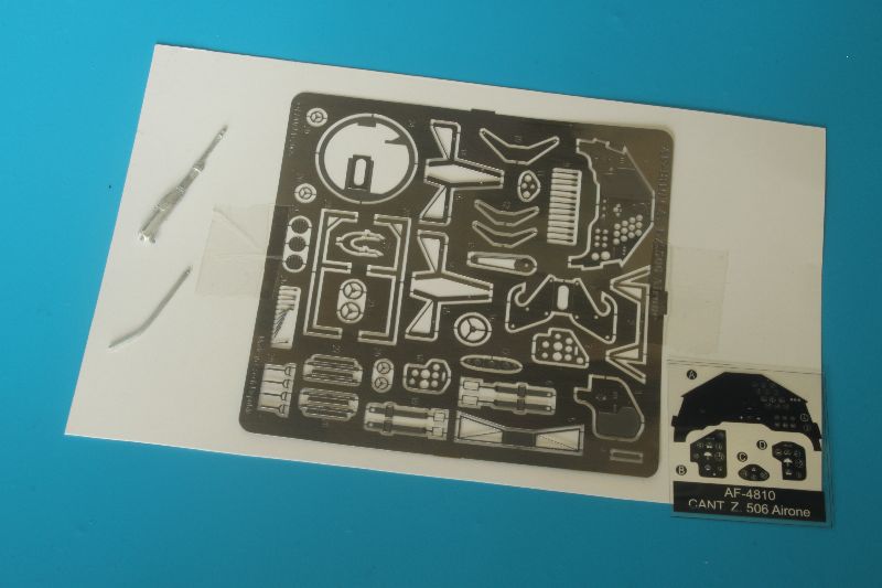 Drobne detale wyposażenia umieszczono na fotortawionej blaszce, której producentem jest czeski Eduard. Jej uzupełnieniem są dwa detale odlane z białego metalu – wkm Breda Safat oraz jakiś kawałek przewodu, którego przeznaczenia na dzień dzisiejszy jeszcze nie rozszyfrowałem. Instrukcja co prawda wymienia ich trzy lecz w rzeczywistości dwa pozostałe karabiny odlano z żywicy co niewątpliwie wyszło im na dobre. Kalkomania umożliwia wykonanie modelu w 5 malowaniach – 4 włoskich i 1 niemieckim. To ostatnie, jak również jedno malowanie włoskie dotyczą wersji sanitarnej S, zaś pozostałe to maszyny bojowe, czyli Z. Wszystkie malowania są zaproponowane malowania są bardzo atrakcyjne, lecz w moim przypadku wykorzystane zostaną tylko logotypy firmy CRDA – budowany przeze mnie model będzie miał malowanie MDLOTU w Pucku. Producentem kalkomanii jest włoski Cartograf, korzystałem z produktów tej firmy w przeszłości i nie mam powodów do narzekania na jakość jej wyrobów.