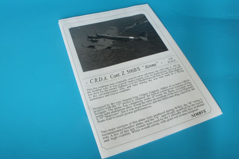 Wodnosamolot bombowo – torpedowy CANT Z-506 Airone jest konstrukcją znana miłośnikom lotnictwa, jednakże modelarze pragnący wykonać jego miniaturę nie są zbytnio rozpieszczani przez producentów modeli. Do dyspozycji mamy dość leciwy zestaw oferowany przez włoski SuperModel w skali 1/72, oraz żywiczny model amerykańskiej firmy AlphaFlight w skali 1/48. Temu ostatniemu przyjrzymy się bliżej.