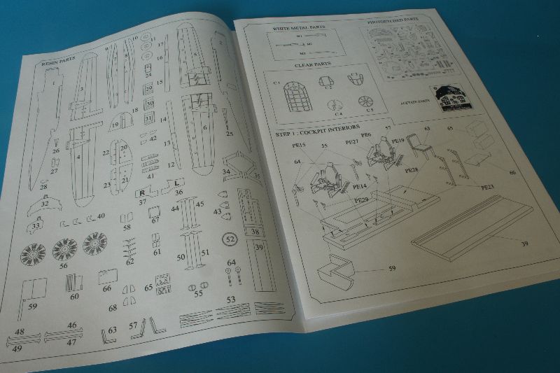 Dołączona do modelu instrukcja wydrukowana została na kredowym papierze, zawiera podstawowe informacje o samolocie, rysunki instrukcyjne są przejrzyście opracowane, dołączono schemat poszczególnych części wraz z numeracją, lecz jednak trochę brakuje dokładności i czytelności, nie ma też generalnego schematu montażowego. Trzeba mieć minimalno chociaż dokumentację, żeby prawidłowo wykonać wnętrze kadłuba.