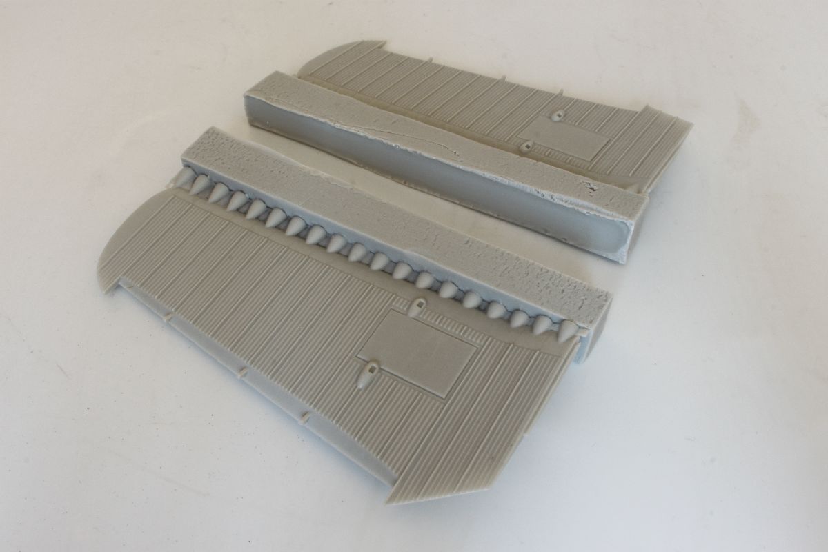 - Nie moja tematyka, ale ośliniłem się – stwierdził kolega wręczając mi pudełko z modelem. Otworzyłem, zajrzałem do środka i… ośliniłem się. Zestaw bardzo porządnie zabezpieczono folia bąbelkową. Znajdujemy tam trzy woreczki z elementami odlanymi z jasnoszarej żywicy oraz płaty. Już na pierwszy rzut oka widać bardzo dokładne wykonanie poszczególnych elementów, ich faktury czy detali. Samolot w oryginale miał płaty, usterzenie i golenie podwozia pokryte blachą falistą Wibault. To w jaki sposób projektanci modelu odtworzyli jej fakturę, dosyć przecież skomplikowaną, zasługuje na najwyższe uznanie. Linie są równe, ostre i wyraźne. Mnie osobiście bardzo cieszy fakt, że wszystkie powierzchnie sterowe wykonano jako osobne i będzie można wykonać je jako wychylone.