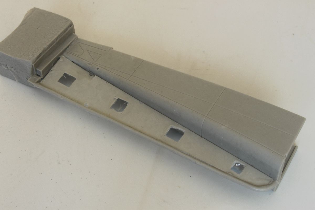Zupełnie inaczej niż dotychczas zaprojektowano kadłub. Nie są to dwie klasyczne połówki, lewa i prawa. W modelu PZL P-1 kadłub składa się z części silnikowej, do której doklejamy cała resztę składającą się ze swego rodzaju wanny, w której umieszczony jest kokpit. Z góry należy osłonę kabiny oraz grzbiet kadłuba. Wszystkie te elementy są wyposażone w coś w rodzaju listew i rowków ustalających ich wzajemne położenie. Powinno to pozwolić na dokładne i czyste sklejenie cementów w całość. Cała drobnica również nie odbiega jakościowo od opisanych elementów modelu.