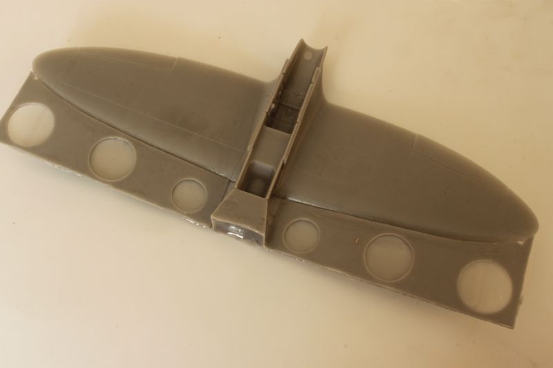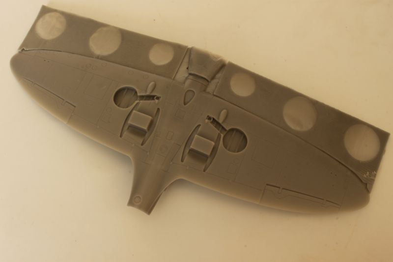 Jak zaznaczyłem powyżej model ten o zupełnie nowatorskie podejście do zagadnienia, według producentów ma on się łatwo odlewać i łatwo sklejać. Dlatego zastosowano zupełnie inny podział technologiczny. Zasadniczym elementem modelu jest płat. Odlano go w całości razem z lotkami, które wykonano w pozycji wychylonej, czego do tej pory nikt nie robił. Płat stanowi również integralny moduł z dolna częścią kadłuba, gdzie umieszczono sporo z wyposażenia kokpitu i przedziału zawierającego sprzęt foto. Takie opracowanie płata gwarantuje nam prawidłowe ułożenie go względem kadłuba, nie musimy się martwić o szczeliny w przejście skrzydło kadłub czy prawidłowy wznios.