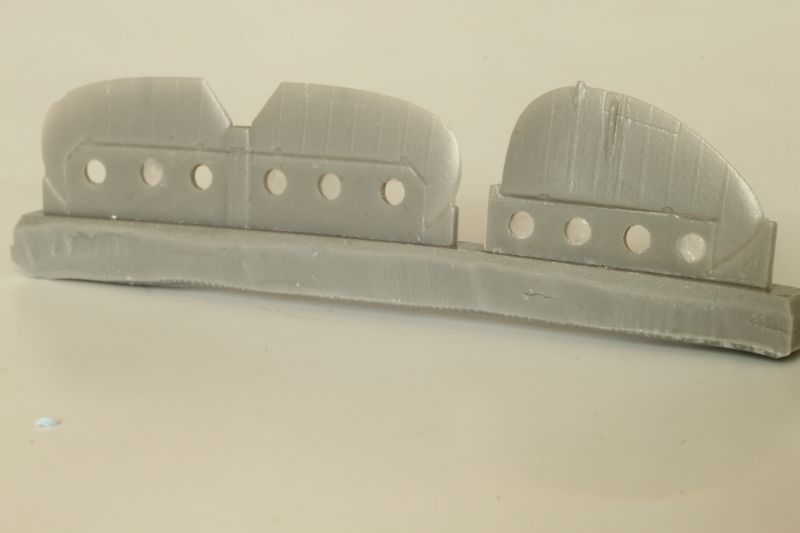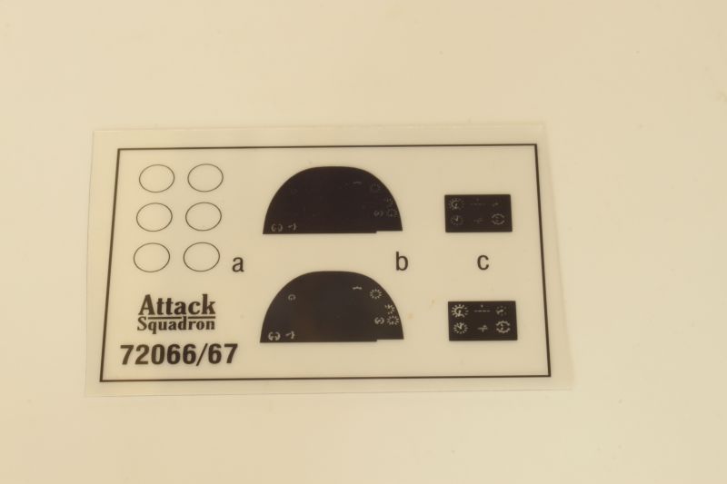 Żywiczne odlewy producent uzupełnił fototrawioną blaszką na której znajdziemy tablicę przyrządów, pasy, grille do chłodnic oraz kilka innych drobiazgów, w sumie kolejnych kilkanaście detali. Jak wspominałem wcześniej producent umieścił tu również pokrywy luków przedziału foto, dla tych którzy zechcą te luki otworzyć. Do blaszki dołączono kliszę z zegarami oraz obiektywami sprzętu fotograficznego.Osłonę kabiny wykonano metodą vacu i składa się ona z dwóch elementów – wiatrochronu z limuzyna oraz części tylnej. Jeżeli chcemy wykonać ja w pozycji otwartej musimy odciąć limuzynę od wiatrochronu i wkleić w odpowiedni sposób. Wtedy też należy pamiętać o otwarciu drzwiczek w lewej burcie kadłuba i nawierceniu cienkim wiertłem otworów we wrędze z fotelem pilota.