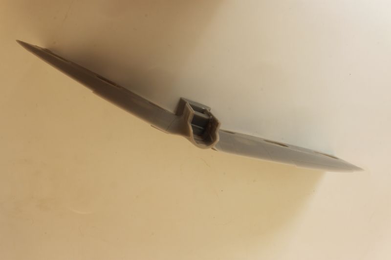Żeby złożyć płatowiec w całość należy dokleić dwa elementy, górną część kadłuba oraz dziób. Montaż ułatwiają różnego rodzaju wypustki. Ponadto producent przewidział dwa rodzaje „brody” zawierającej zbiornik oleju – z krótkim oraz długim wlotem powietrza. Dysponujemy również podwieszanym zbiornikiem paliwa. To kolejna nowość – mamy odtworzoną fakturę w górnej części, której normalnie nie widać do wklejeniu tego elementu w model. Możemy zbiornik wykorzystać jako wyposażenie np. winietki na której nasz model będzie prezentowany.