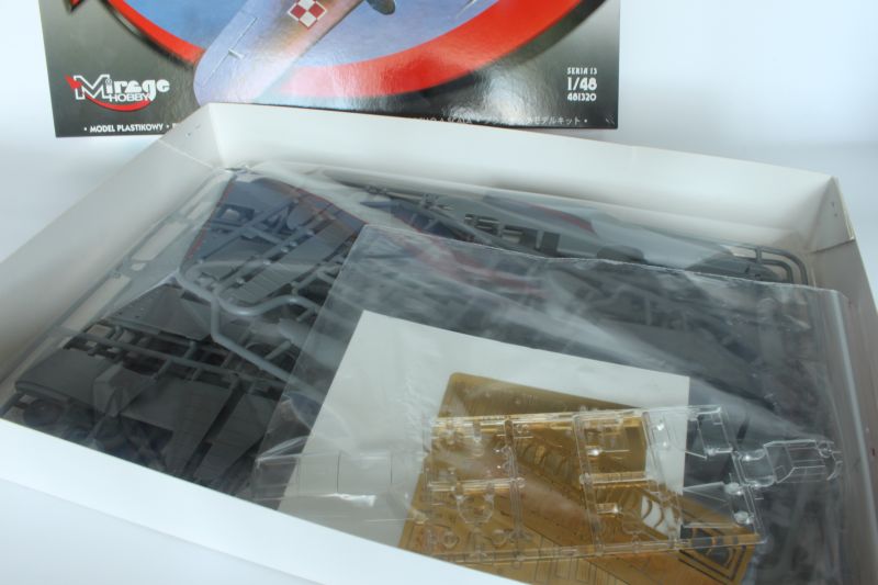 Nowy zestaw Mirage Hobby składa się pięciu ramek wtryskowych z ponad sektą elementów odlanych z ciemno szarego tworzywa. Ponieważ oryginał powstał w wyniku przeróbki seryjnego egzemplarza PZL P-23A, również i model bazuje na wcześniejszym zestawie umożliwiającym budowę właśnie tej odmiany.
