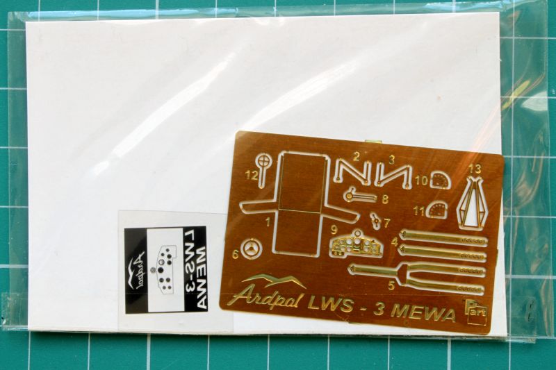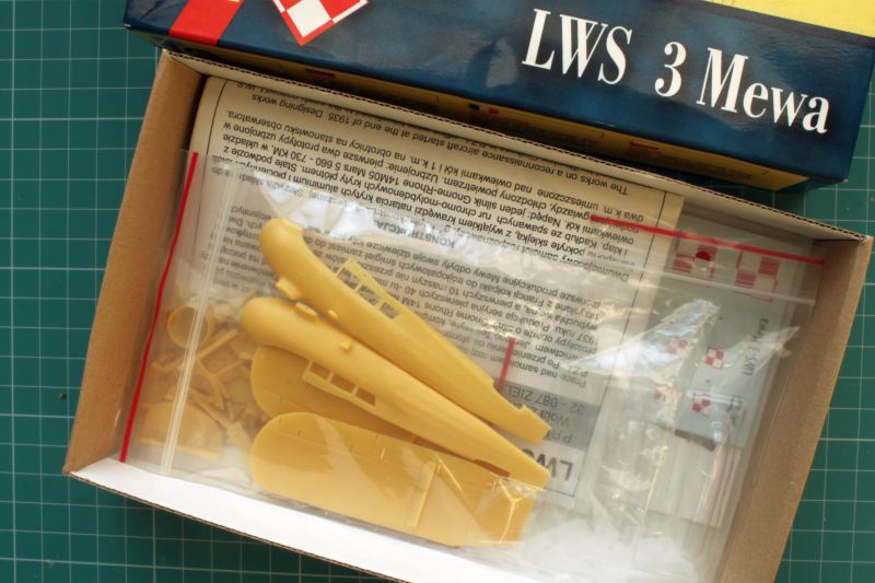 Zestaw zapakowany został w niewielkie, ale bardzo estetyczne pudełko, z bardzo estetycznym boxartem, przedstawiającym boczną sylwetkę Mewy na tle planów samolotu. Obecnie boxarty Ardpolu nieco się zmieniły, o czym pisałem przy okazji PWS-24. W środku znajdujemy kilka torebek z żywicznymi elementami, które stanowią podstawę zestawu, blaszkę, kabinę vacu, kalkomanię i instrukcję. Model, jak wszystkie produkcje Ardpolu został wykonany w technologii odlewu żywicznego, do którego użyto jasno kremowej żywicy. Jakość odlewów jest bardzo dobra, nie mają one pęcherzyków powietrza, skaz itp.
