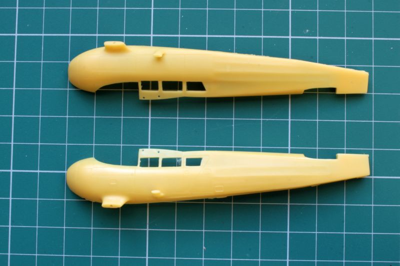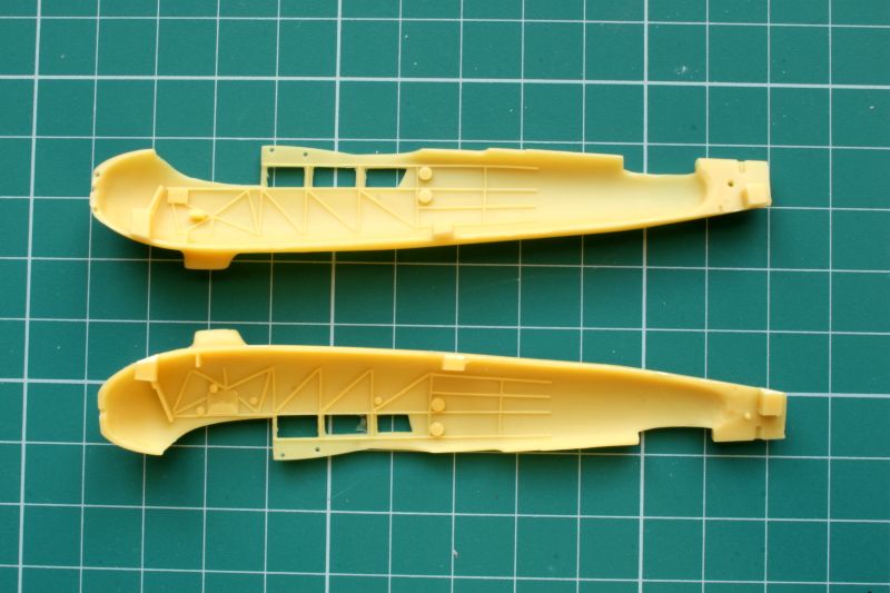 Kadłub posiada klasyczny podział na prawą i lewą połówkę. Faktura powierzchni tak z zewnątrz jak i wewnątrz jest bardzo szczegółowa. Matem delikatne, wklęsłe linie podziału, pięknie odtworzoną fakturę poszycia płóciennego na zewnątrz, zaś we wnętrzu całą konstrukcję kadłuba, wyposażenie kabiny, magazynki do karabinu maszynowego. Ważne jest również to, że nie ma tu wielkich klocków wlewowych, wymagających długiej i uważnej pracy w piłką, tylko niewielkie prostopadłościany, których usunięcie nie powinno nastręczyć większych problemów.