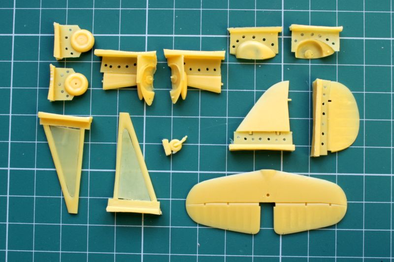 Omawiając żywiczną część zestawu można mieć wrażenie, że model Mewy jest prosty, łatwy i relaksacyjny. Tak jednak nie jest to model przeznaczony raczej dla modelarzy zaawansowanych. Z powodu osłony kabiny, która wykonano w technologi vacu i która ma dosyć skomplikowany kształt, jaki musimy wyciąć, żeby poprawnie osadzić ją na kadłubie. Część okien montujemy w kadłubie, co także wymaga pewnego doświadczenia i wprawy. Na szczęście producent wyposażył zestaw dwa komplet oszklenia, więc jak coś nie wyjdzie jak trzeba, mamy druga szansę. Żywica i vacu uzupełniona jest o małą fototrawioną blaszkę. Znajdują się na niej drobne detale kokpitu - tablica (z kliszą oczywiście), pasy, fotel pilota, trochę pokręteł, dźwignie, słowem wszystko co potrzebne, by nasza miniatura prezentowała się efektownie.