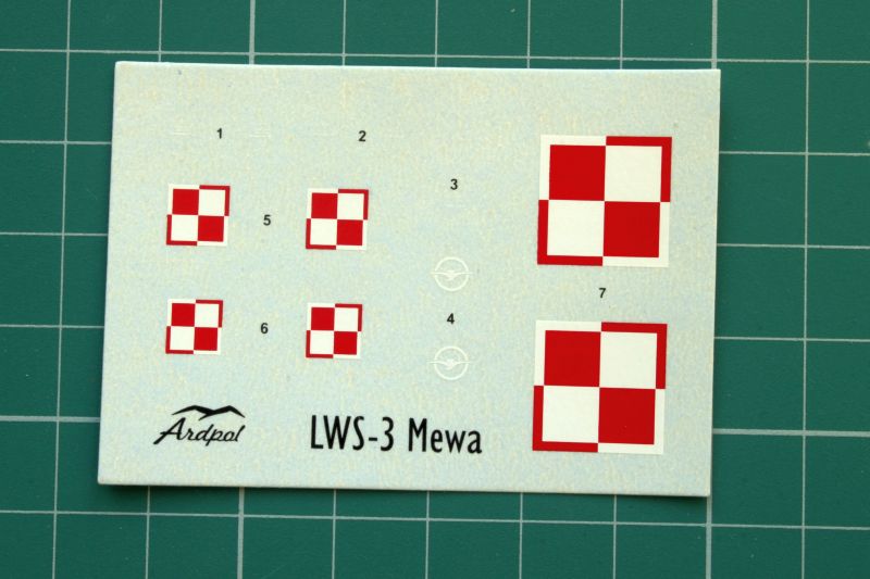 Kalkomania umożliwia wykonanie modelu w jednym schemacie malowania, tym które znamy ze zdjęć archiwalnych. Poza szachownicami na kartoniku znajdują się loga LWS oraz kilka napisów eksploatacyjnych. Nie spotkałem się z przypadkiem aby polscy producenci modeli żywicznych dodawali do swoich zestawów kalkomanie słabej jakości. Tak jest i tym razem. Błona cieniutka, zaś druk wolny od jakichkolwiek skaz czy też wad.