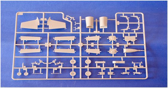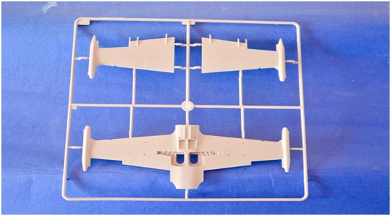 Elementy z pozostałych ramek, jak już wspomniałem są w kolorze szarym. Podczas ich oglądania nie stwierdziłem jakiś rażących niedociągnięć, nadlewek lub miejsc po wypychaczach, które mogły by negatywnie wpłynąć na budowę modelu. Elementy mają bardzo subtelnie zrobione podziały na kadłubie i skrzydłach. Linie i nitowanie są wgłębne, ale nie przesadnie. Razem daje nam ok. 140 elementów w zestawie.