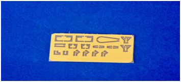 Ramki z uzbrojeniem są dwie. Mamy do dyspozycji dwa dodatkowe zbiorniki paliwa, dwie wyrzutnie UB-16, dwie bomy 50kg i 4 pociski powietrze-powietrze typu R-13 wraz z belkami, żeby móc je podwiesić pod skrzydłami modelu.