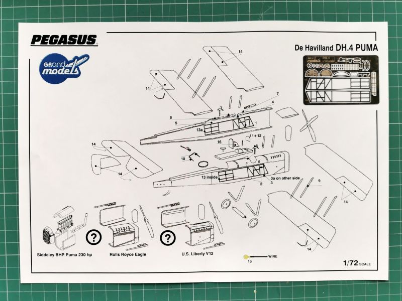 Ta ostatnia informacja może być dla modelarzy nieco starszych wiekiem i doświadczeniem powrotem do jednego z najstraszniejszych modelarskich koszmarów. Pegasus to nazwa wręcz kultowa, to producent z Wielkiej Brytanii, który popularność zdobył w latach 90-tych XXw. Modelami samolotów z okresu I Wojny Światowej wydanymi jako short runy. A w tamtych czasach to nie było to co dzisiaj. Trzeba się było mocno napracować, zanim kolejna replika trafiła na półkę. Nie było także wtedy Rodena ani Eduarda, często te modele stanowiły jedyną alternatywę, ale i wiele pięknych replik z nich powstało. Pegasus elementy plastikowe uzupełniał o odlewy z białego metalu, co w tamtych czasach było dość powszechne, oraz kawałki profili z których we własnym zakresie należało zrobić zastrzały. Tak jest i w przypadku DH.4 wydanego pod szyldem Grand Models.