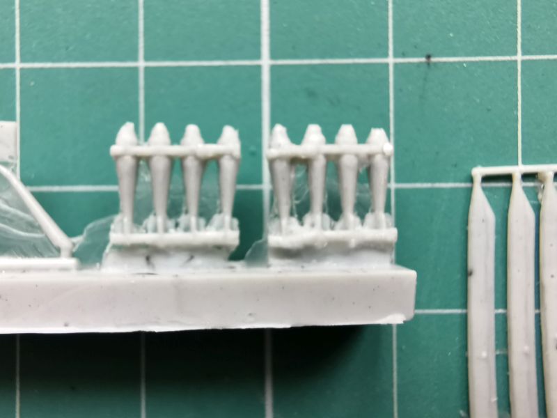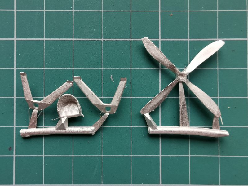 Jak wspomniałem wcześniej, firma Pegasus do swoich modeli dołączała drobne detale wykonane w technologii odlewów z tak zwanego „białego metalu”. W tamtych czasach, takie właśnie artefakty wskazywały, że zestaw jest „wypasiony” i „na bogato”, gdyż popularne dziś żywice i fototrawki dopiero raczkowały. Tak jest i w tym przypadku. Mamy do dyspozycji kilkanaście detali o różnej jakości. Tak na przykład śmigło i fotel pilota stanowią bardzo mocny punkt zestawu, podobnie golenie podwozia głównego. Wymagają obróbki w niewielkim jedynie stopniu. Podobnie rzecz ma się z karabinami i kolektorami spalin do obu alternatywnych wersji silników. Nieco gorzej jest z prądnicami i podpórkami zabezpieczającymi pod dolne skrzydła. Tu już trzeba się przyłożyć, natomiast jeśli chodzi o obrotnicę, to wykorzystać można jedynie podstawę, zaś rama w moim egzemplarzu był tak fikuśnie powyginana, że w pierwszej chwili nie wiedziałem co to jest, gdyby było większe, można by w Zachęcie postawić na jakimś wernisażu sztuki współczesnej. Jest na szczęście alternatywa.