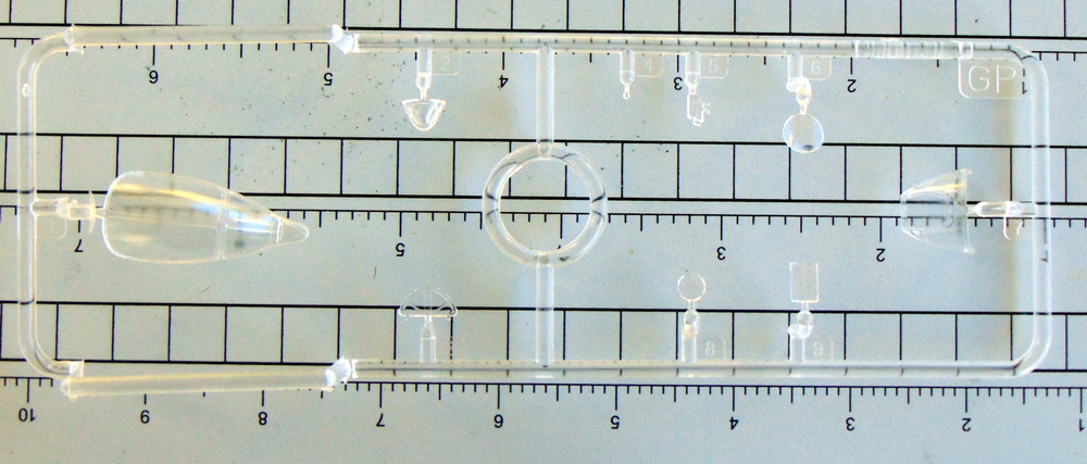 Oprócz trzech ramek z szarego plastiku w pudełku znajdziemy również jedną ramkę przezroczystą zawierającą oszklenie kabiny i przezroczyste elementy luków kadłuba oraz fotokarabinu. Hobby 2000 uzupełniło model o maski do wszystkich przezroczystych części. Oszklenie kabiny składa się z dwóch elementów, dzięki czemu bez problemu wykonamy model zarówno z otwartą i zamkniętą owiewką kabiny.