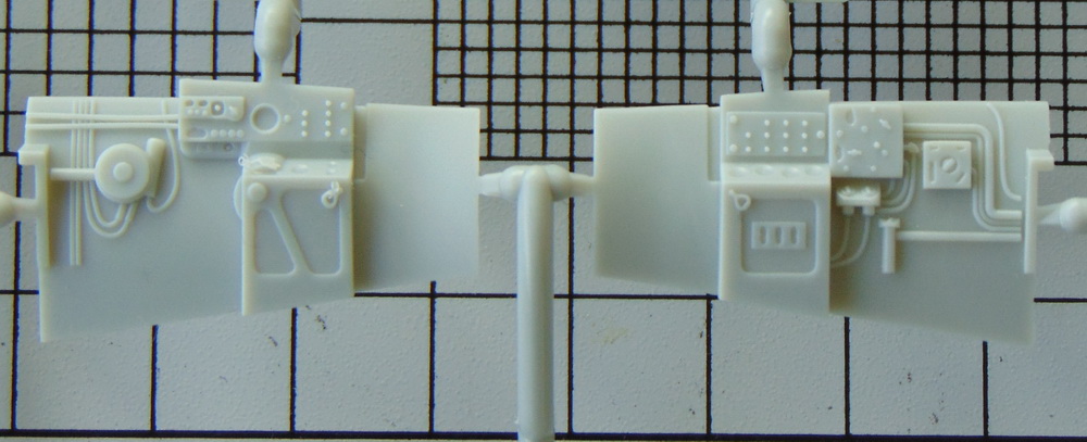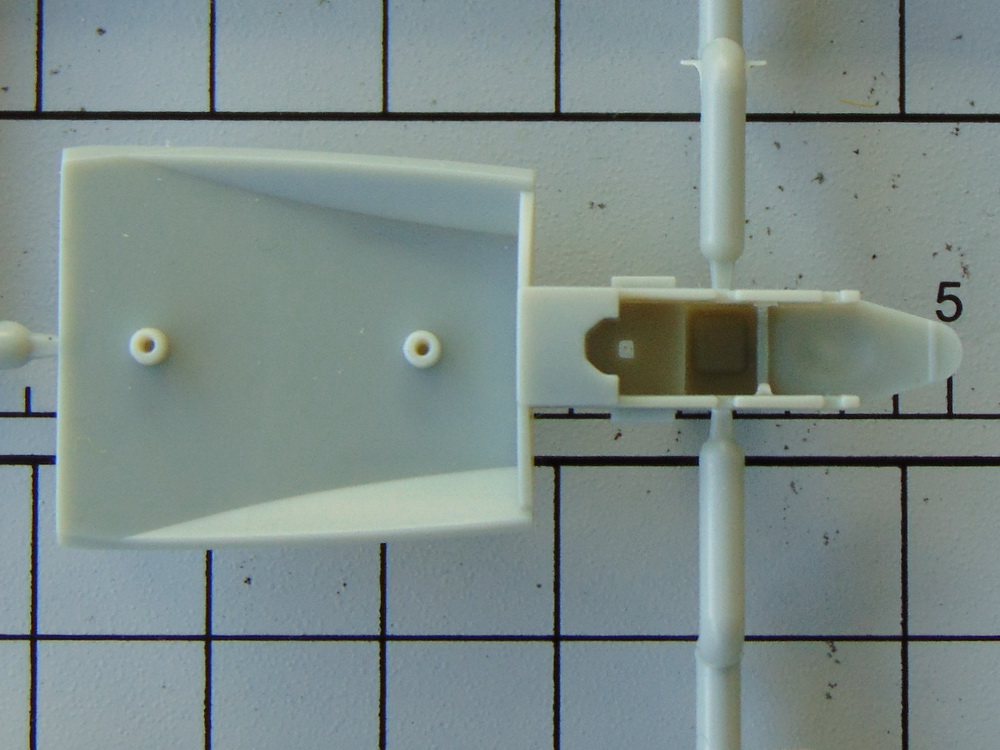Kabina pilota jest dość uboga jak na skalę 1:48 - tablica jest wykonana tylko jako płaski element, na który należy nakleić kalkomanie. Lepiej wyglądają boczne ściany kabiny, gdzie mamy odwzorowane przełączniki i okablowanie. Warto zwrócić przy montażu uwagę w jaki sposób wkleimy je do podłogi kabiny. Instrukcja sugeruje błędnie wklejenie tych elementów.
