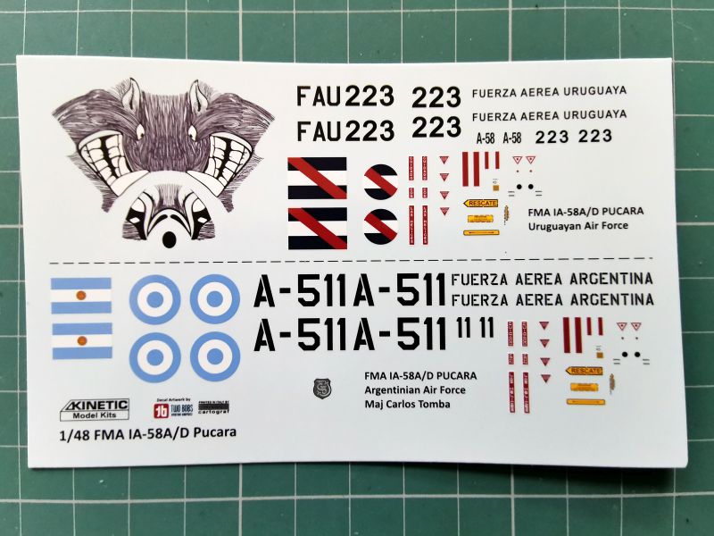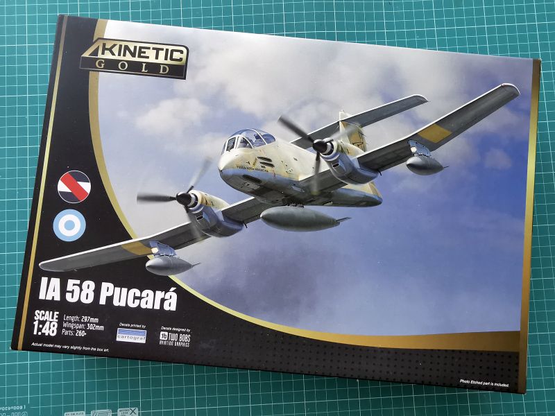 Samolot szturmowy IA 58 Pucará ma wszystkie cechy żeby stać się atrakcyjnym dla modelarzy. Elegancka i bardzo bojowa sylwetka, sporo ciekawych malowań, dość egzotyczne jak na modelarzy z Europy pochodzenie a także ciekawa historia bojowa, czyli konflikt o Falkalndy (Malwiny) z 1982r. Modelarze budujący swoje miniatury w skali 1/72 od dłuższego czasu mieli do dyspozycji bardzo dobre zestawy firmy Special Hobby, natomiast ci, którym bliższa jest skala 1/48 mieli Możliwość budowy modeli tego samolotu jedynie o zestawy żywiczne, trudno dostępne, kosztowne i wymagające doświadczenia. Teraz sytuacja się zmieniła za sprawą firmy Kinetic, która z końcem 2020r. opracowała i wydała własną miniaturę tego samolotu.