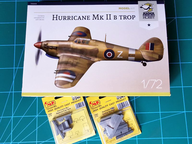 Zanim jednak zajmę się zawartością blisterków z żywicznymi dobrodziejstwami z CMK, słów kilka na temat nowej propozycji Arma Hobby w temacie Hurricanów. Tym razem jest wersja MK IIB Trop, czyli krótko mówiąc Hurribomber w filtrem przeciwpyłowym, kojarzący się z śródziemnomorskim teatrem działań wojennych. Ale nie tylko.