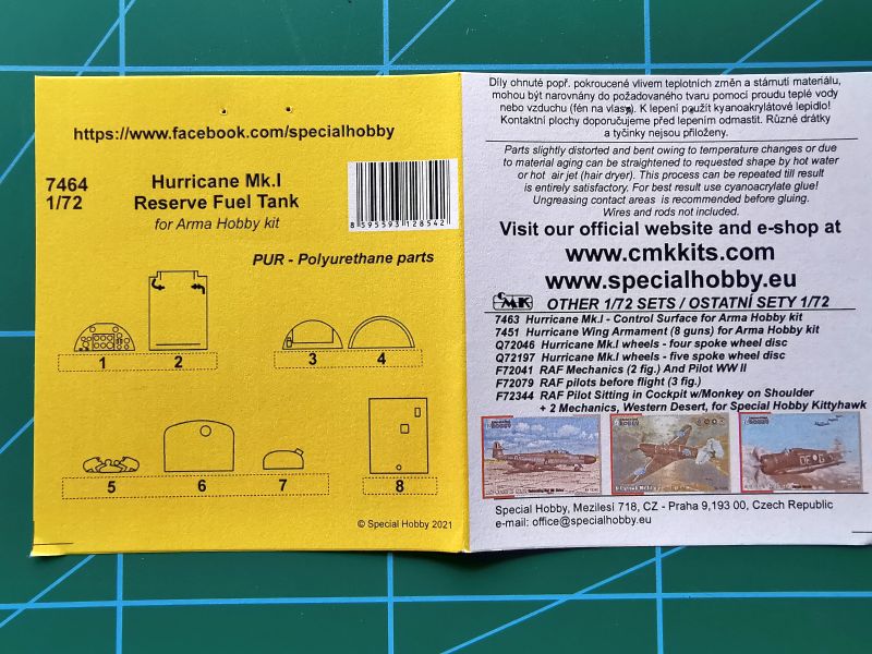 Swego czasu napisałem, że często o jakości modeli świadczy ilość wyprodukowanych do niego dodatków, głównie w postaci blaszek fototrawionych i zestawów elementów żywicznych. Nie miałem tu w żadnym wypadku na myśli zestawów korekcyjnych, pozwalających poprawić nieprawidłowości zestawu, ale pozwalające z dobrego modelu uczynić jeszcze lepszy. Tak właśnie jest z modelami Hurricanów opracowanych w podziałce 1/72 przez warszawską Arma Hobby. Modele te zdobyły uznanie na całym świecie, nie jest więc niczym dziwnym pojawienie się do nich całej gamy dodatkowych akcesoriów. Najpierw pojawiły się akcesoria rodzinnego YahuModels, potem blaszki wydał Eduard, zaś następnie żywiczne akcesoria wydały CMK oraz Aires. Teraz CMK dołożyła do wydanych wcześniej komór uzbrojenia zestaw umożliwiający zabudowę rezerwowego zbiornika paliwa oraz wychylonych powierzchni sterowych i klap.