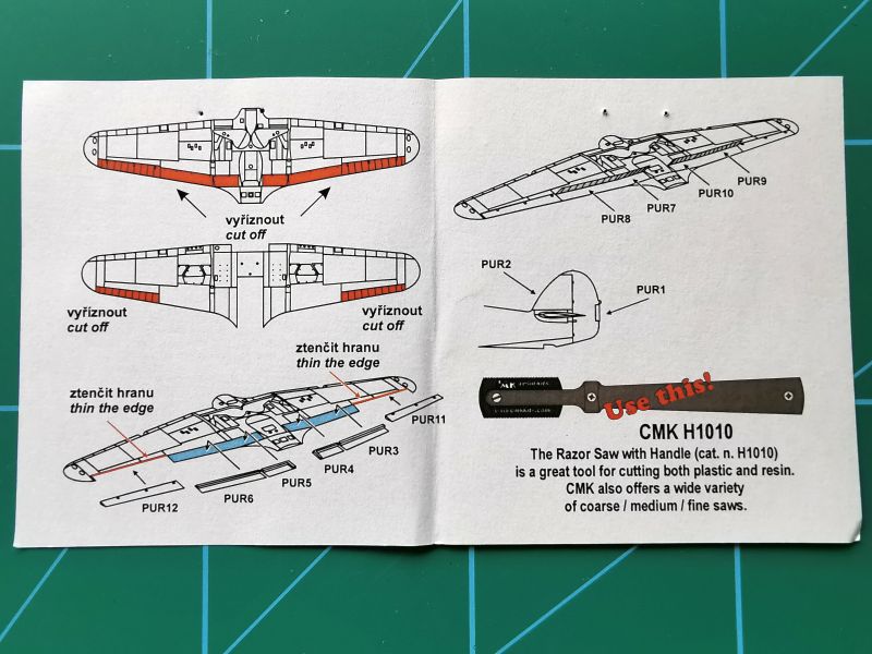 W instrukcji także nie ma jakiś szczególnych rewolucji. Żółty diagram z wykazem elementów, trochę propagandy na temat ostatnich nowości z CMK i Special Hobby oraz czytelne rysunki montażowe.