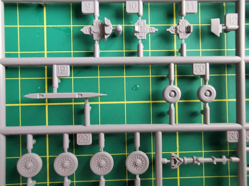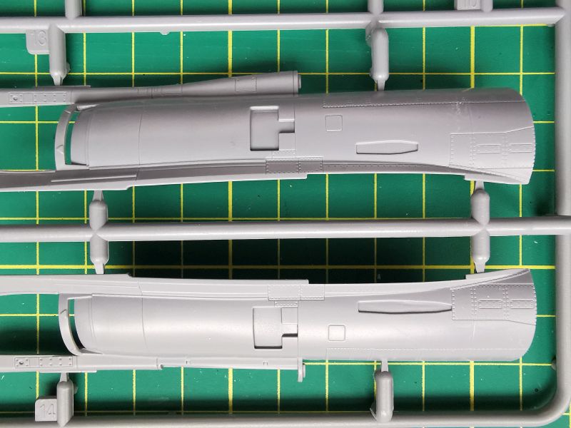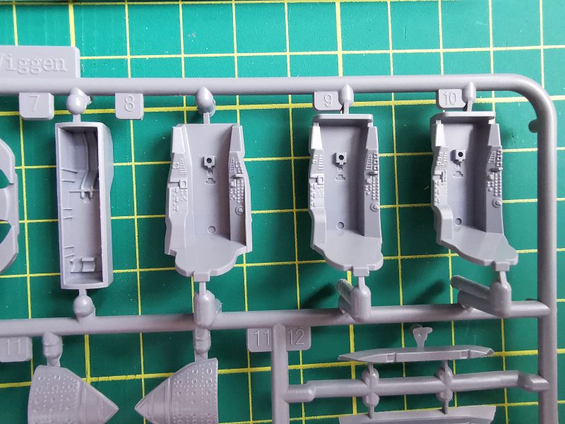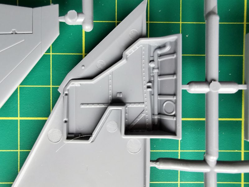 Mamy za to trzy rodzaje kokpitów, z których i tak użyjemy jednego, podobnie jak w przypadku tablic przyrządów. Wszystkie te detale wykonano bardzo ładnie, można także pokusić się o żywiczne zamienniki, ale czy jest sens? Na to pytanie każdy musi odpowiedzieć sobie indywidualnie. Myślę, że po drobnej waloryzacji wykonanej we własnym zakresie i zastosowaniu odpowiednich technik malarskich, to co zaproponował producent jest w stanie się obronić. Podobnie jest w przypadku luków podwozia, tu naprawdę wystarczy dokleić kilka drucików imitujących przewody instalacji elektrycznej i hydraulicznej, a wszystko powinno wyglądać jak należy. Jak sobie przypomną budowę modelu z zestawu Hellera, gdzie luki starałem się odtworzyć we własnym zakresie…