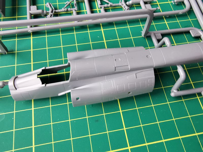 Model nie ma także klasycznego podziału technologicznego, na jaki może wskazywać konstrukcja samolotu. Ponieważ kadłub ma dość skomplikowaną bryłę a także sporo podzespołów w środku, projektant musiał to uwzględnić podczas opracowywania form. W rezultacie kadłub składa się pięciu podstawowych elementów, zaś prawidłowe ich sklejenie wymagać będzie sporo uwagi i precyzji. Skrzydła mają podział klasyczny, zaś powierzchnie sterowe przednich stateczników opracowano jako oddzielne elementy. Bardzo ładnie prezentuje się faktura powierzchni płatowca, linie podziału są równe i wyraźne. Także bardzo dobrze prezentują się wszelkiego rodzaju panele inspekcyjne oraz zaznaczone gdzie nie gdzie nity.