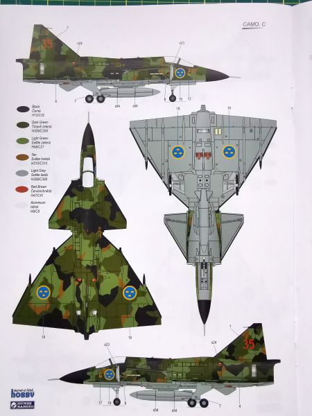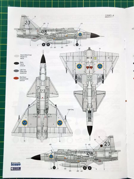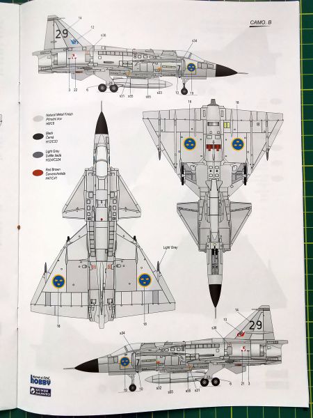 Skoro mowa o malowaniach to mamy do wyboru trzy, dwa w naturalnym wykończeniu metalicznym i jedno w jakże charakterystycznym kamuflażu segmentowym tzw. „Spilnter” tak kiedyś powszechnym w szwedzkiej armii, jak obecnie meble z IKEI. Segmentowy kamuflaż jest dla mnie nierozerwalnie związany z Viggenem, choć oba pozostałe są także efektowne. Trudny wybór. Wszystkie trzy warianty są dobrze opisane odnośnie jednostek, w których służbę pełniły samoloty, miejsc stacjonowania dat itp. Nie mamy do czynienia z żadną fikcją literacką czy domysłami. U niektórych producentów z tym bywa różnie, więc zawsze zwracam ta to uwagę.